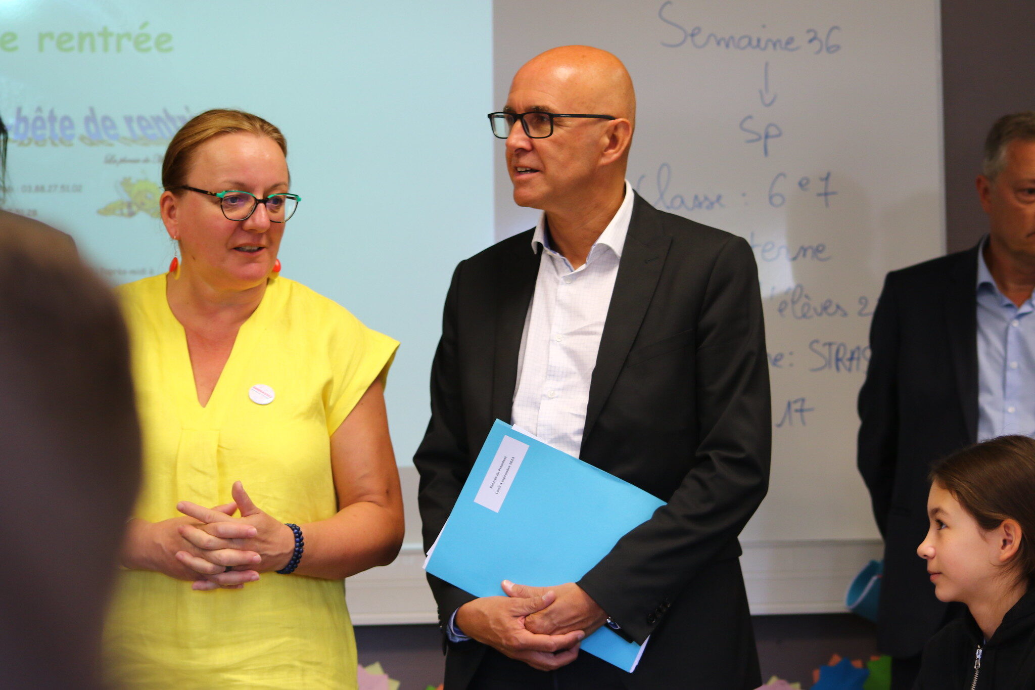Cette année, tous les trois se sont accordés pour démarrer leur tournée des visites d’établissements scolaires à Cronenbourg. Deux mois plus tôt, le 27 juin, le quartier avait été particulièrement touché par les émeutes ayant suivi la mort du jeune Nahel à Nanterre. Le collège Sophie Germain et l’école Marguerite Perey ont été la cible d’incendies ; ce dernier établissement restera d’ailleurs fermé pour la rentrée. Les enfants sont notamment redirigés vers l’école Langevin.