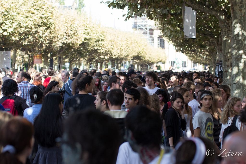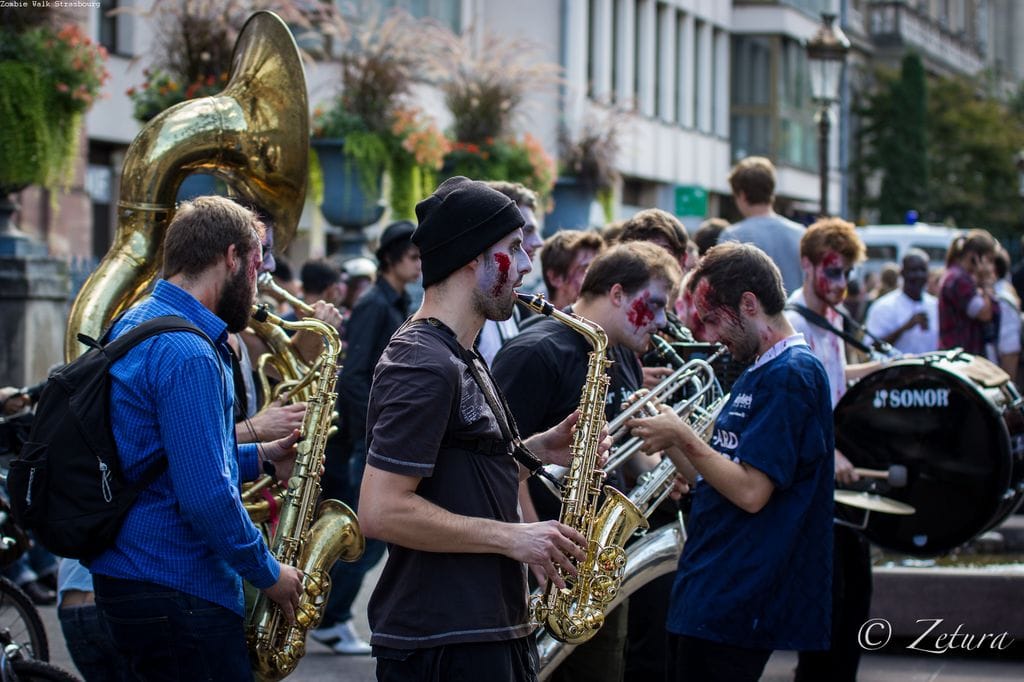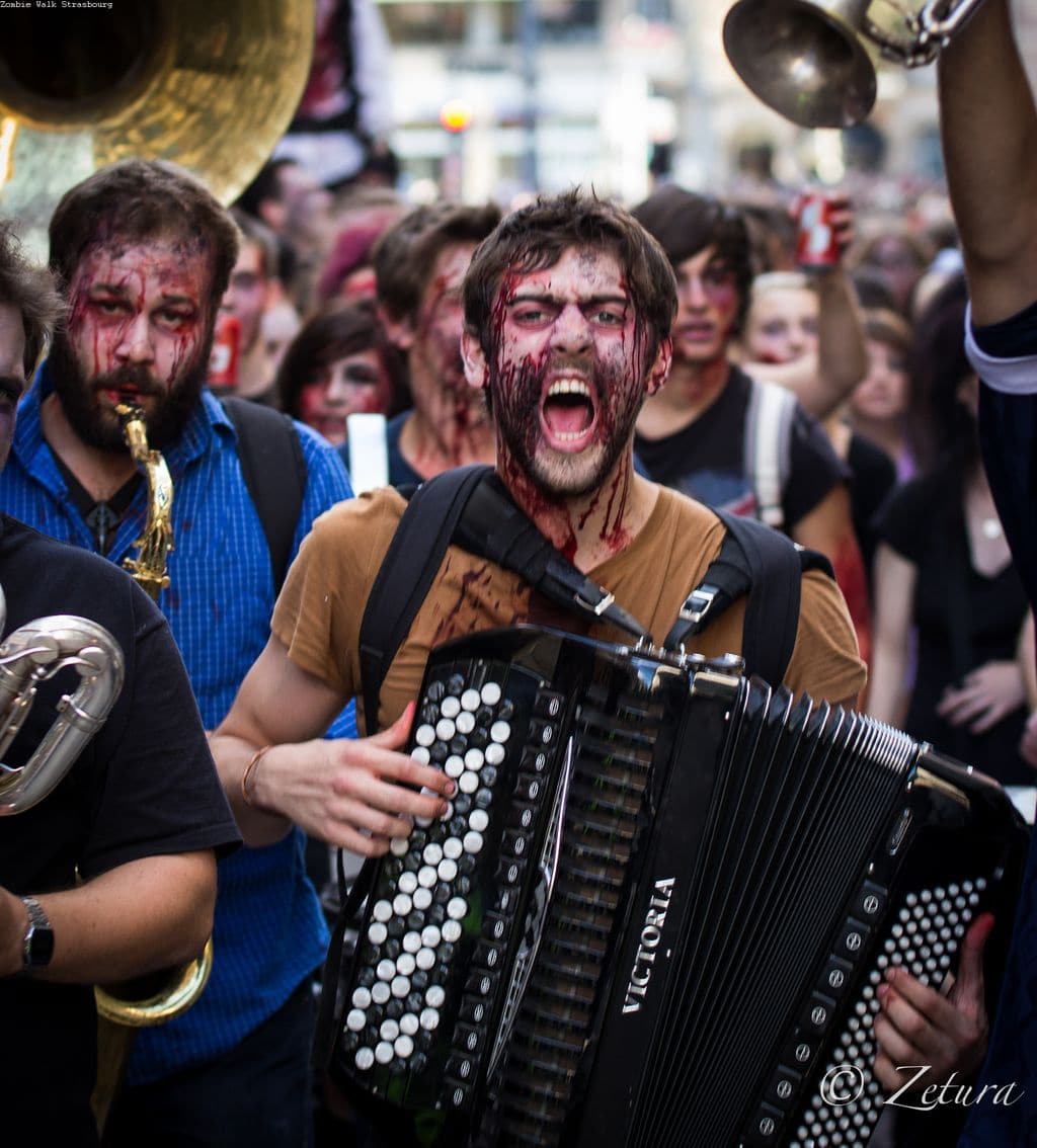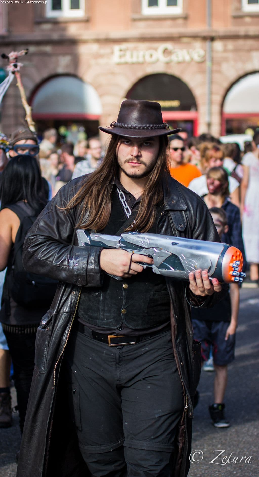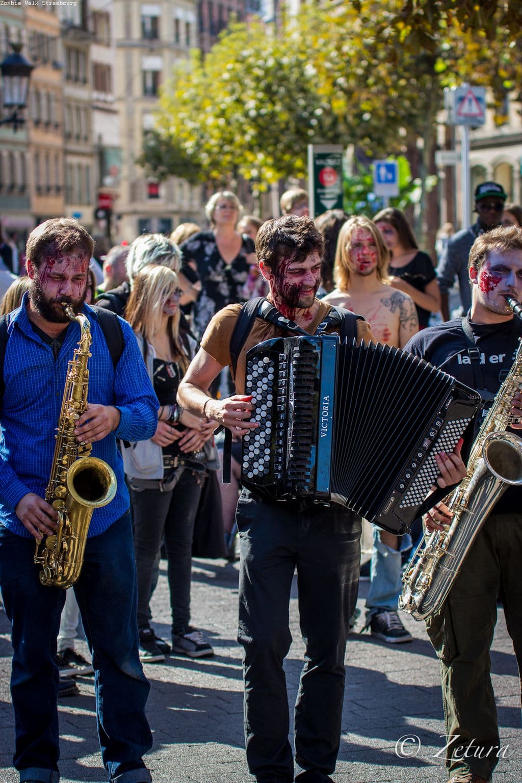 Plus de 3 500 personnes ont participé à la Zombie Walk (marche des zombies) ce samedi après-midi, un record pour cet évènement qui lance le Festival européen du film fantastique. Certains maquillage étaient particulièrement réussi, il faut préciser que pour cette année, les organisateurs s’étaient adjoints les services de spécialistes, qui ont commencé à zombifier les Strasbourgeois deux heures avant le défilé.