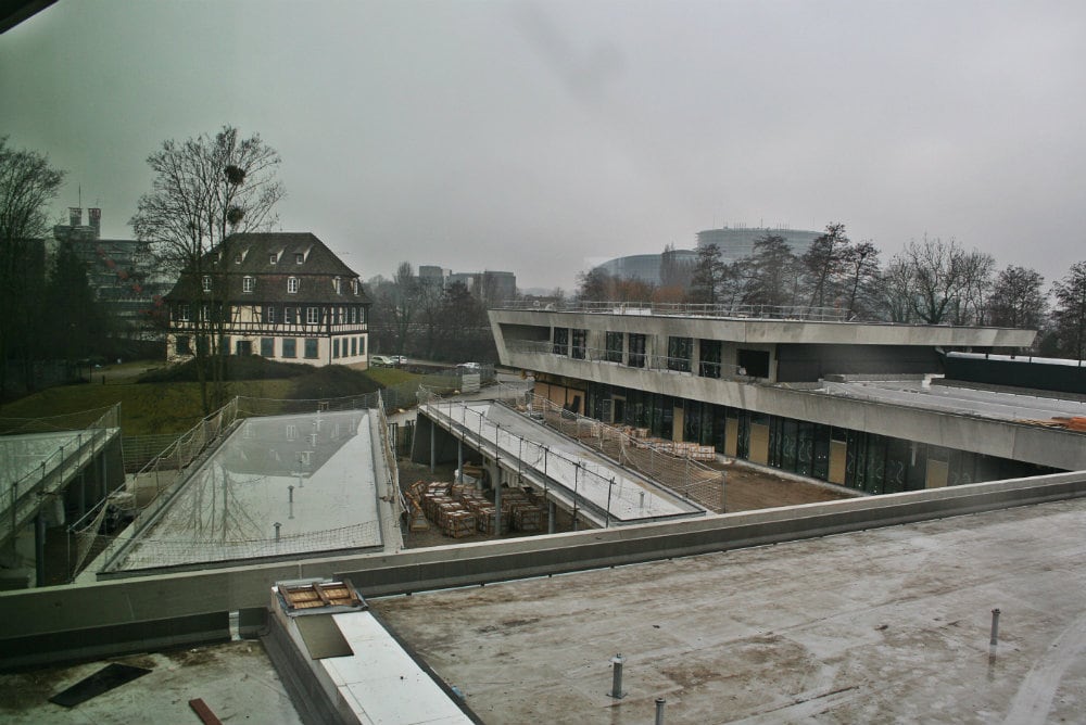 Murs en béton inclinés, porte-à-faux, pare-soleils intelligents, ventilation double-flux, toitures végétalisées… L’école européenne devrait être confortable et moderne. Elle peut : en chantier depuis l’automne 2013, l’école est financée à hauteur de 34,1 millions d’euros par les collectivités alsaciennes, sans compter les aménagements routiers et le terrain (notre article). Elle accueillera 50% d’enfants dont les parents sont employés des institutions et 50% de petits Strasbourgeois triés sur le volet.