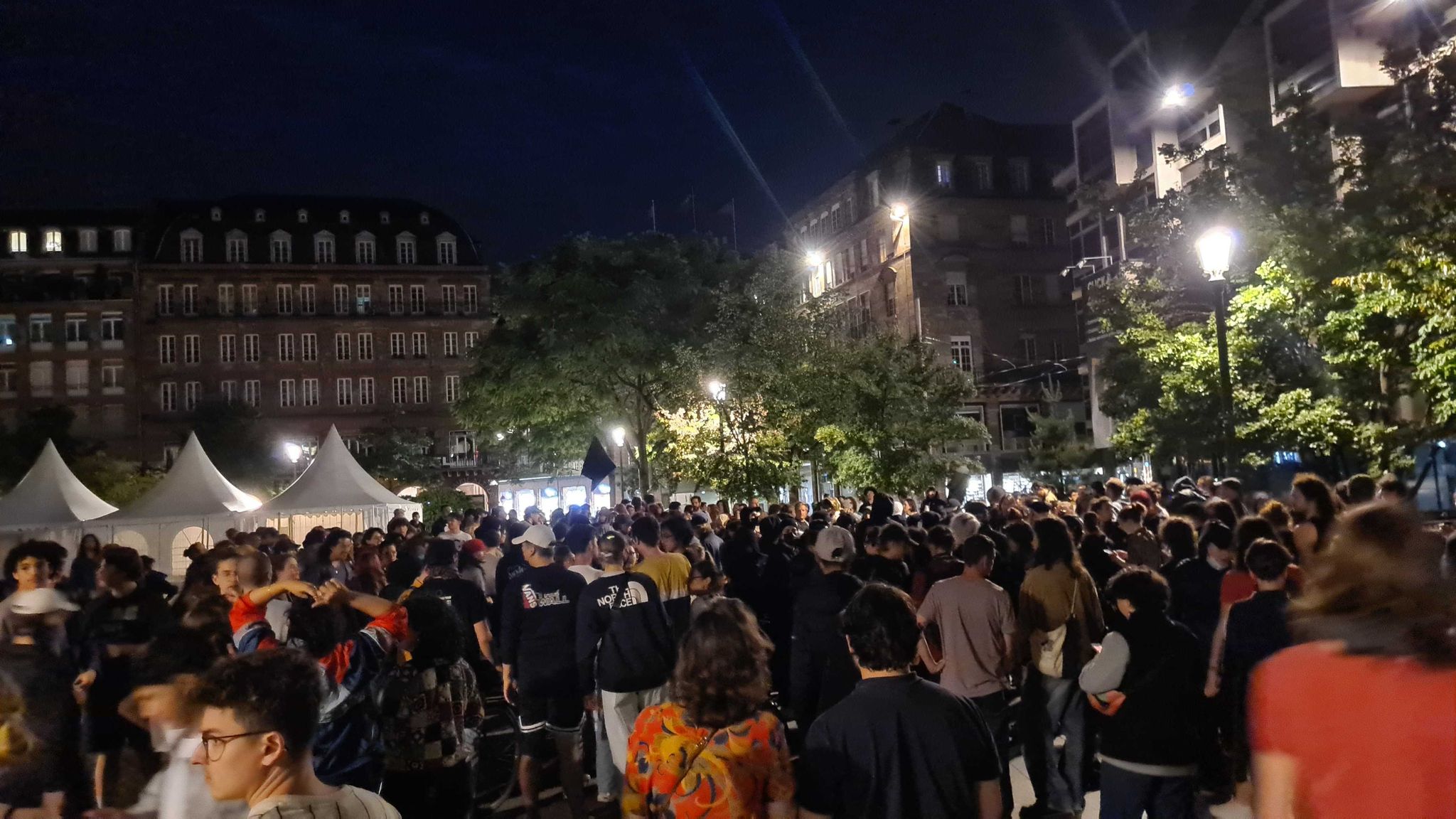 Environ 250 personnes se sont rassemblées en cercle place Kléber. Elles protestent contre la progression du Rassemblement national aux cris « siamo tutti anti fascisti » sous la surveillance de la police.