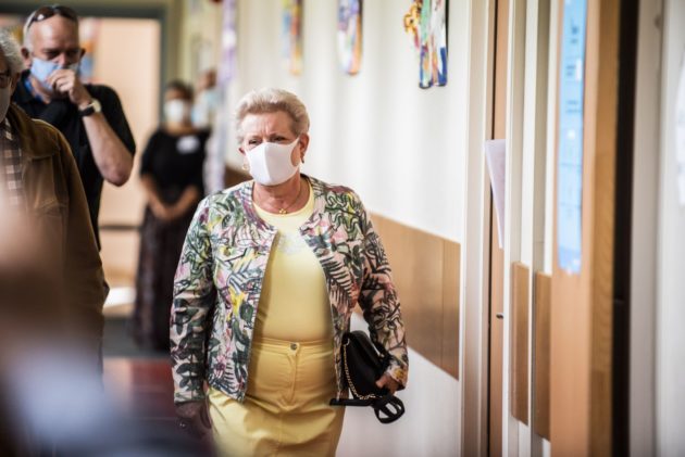 Catherine Trautmann, tête de la liste « Faire ensemble » (PS), a voté ce matin au lycée Kléber.