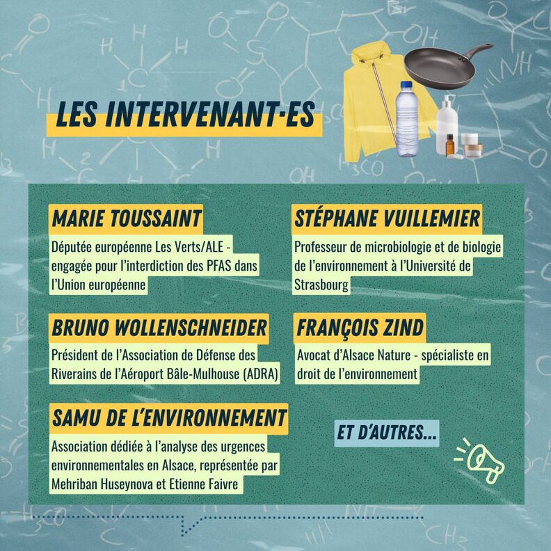 La soirée s’articule autour d’une question : Polluants éternels, problème éternel ? Car en Alsace par exemple, toute la nappe phréatique est polluée par ces molécules persistantes. Une loi votée en janvier 2025 prévoit de réduire la présence des PFAS en France dans certains produits d’ici 2026 et 2030 et l’Union Européenne régule à son niveau leur présence via sa législation sur les produits chimiques.