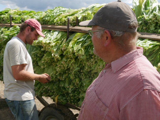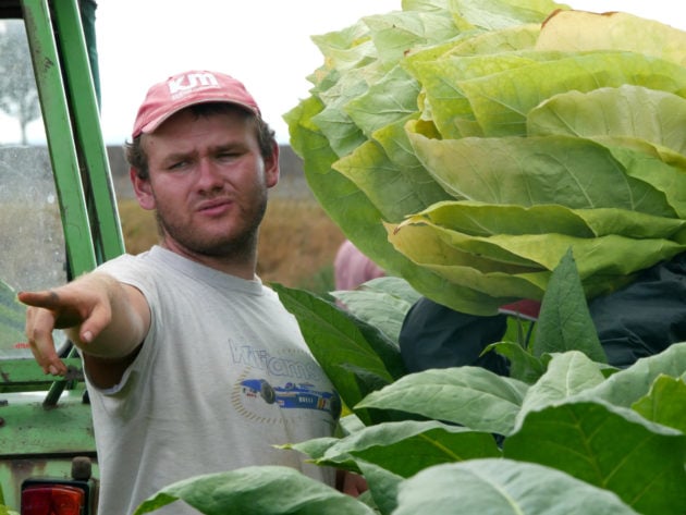 Un à un, les saisonniers arrivent vers la remorque, une pile de grandes feuilles vertes sur la tête. Sans s’arrêter de répondre à mes questions, Pierre-Paul saisit le tabac, le pose et le range à l’arrière d’un tracteur de « plus de 25 ans ». Chaque été, depuis tout petit, il assiste son père dans le champ. « Sans passion, ce métier est impossible » répète Dominique, une leçon bien assimilée par le fils qui ne manque pas de raisons d’aimer la profession :