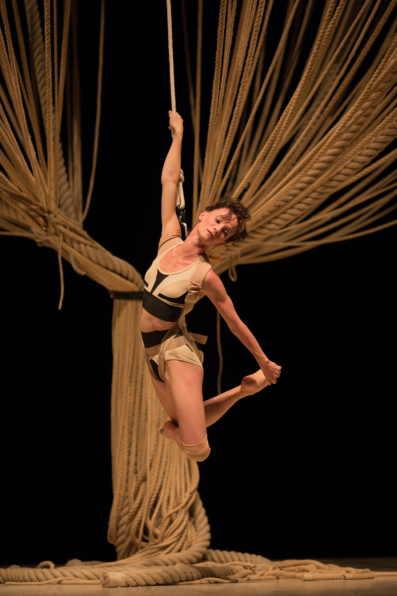 Provoquant, Nò ? Sans doute, ne serait-ce que par la présence des cordes que la pièce érige en éléments indispensables et indissociables du ballet, quand la simple prononciation du mot « corde » est interdite sur les scènes de spectacle par de vieilles superstitions. « Nò » en brésilien veut dire « noeud », et c’est bien là que Deborah Colker veut en venir, comme elle l’expliquait dans un entretien avec Louise Devaine pour Croisements :