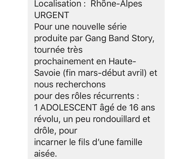 Je me suis filmé à 23h chez moi, dans la pièce d’à côté la machine à laver tournait et faisait un raffut monstre ! Le plus drôle c’est que je n’avais pas de trépied pour la caméra, on a dû empiler des livres et poser la caméra dessus. Malgré ça, après avoir envoyé ma vidéo, la directrice de casting m’a appelé. Elle me demandait de venir à Paris pour rencontrer le réalisateur Philippe Lefebvre. J’étais en terminale, en pleine semaine, mais je me suis dit, « la carrière passe avant tout ! » Mes professeurs n’y ont vu aucun problème. Mais je n’en ai pas trop parlé autour de moi. Je n’avais pas envie de passer pour un vantard, rien n’était fait.