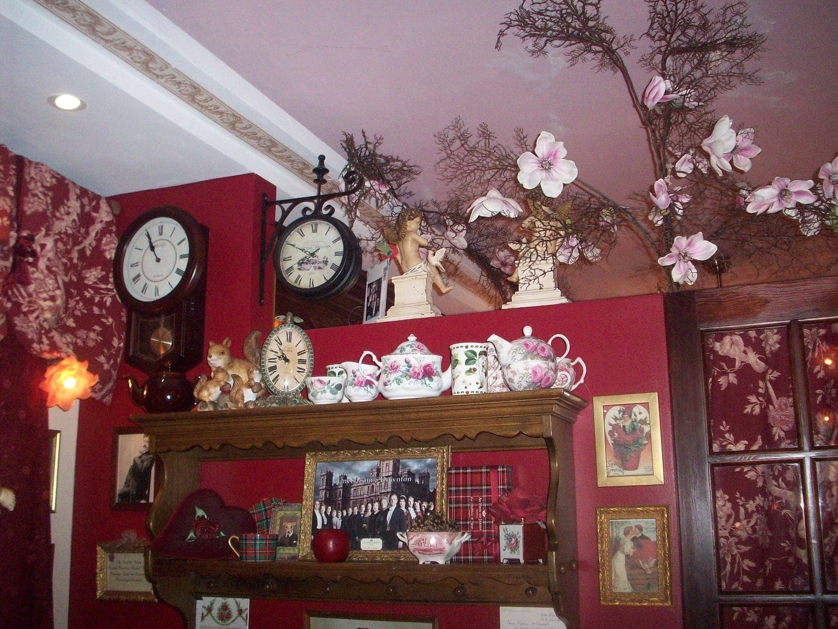 À deux pas de la Cathédrale de Strasbourg se trouve un petit coin d’Angleterre : c’est au 6 rue de la râpe que le salon de thé et boutique « Au fond du Jardin » vend ses propres thés et ses madeleines, autoproclamées « joyaux d’exception depuis 1999 ». Dès l’entrée, le ton est donné : on y trouve des rangées de porcelaine, de boîtes de thé, des objets de décoration. L’espace salon est baigné de tapisserie rougeoyante, chargée de fleurs, d’abats-jours, d’horloges, de cadres photos, dont certains représentent des membres de la famille royale anglaise.