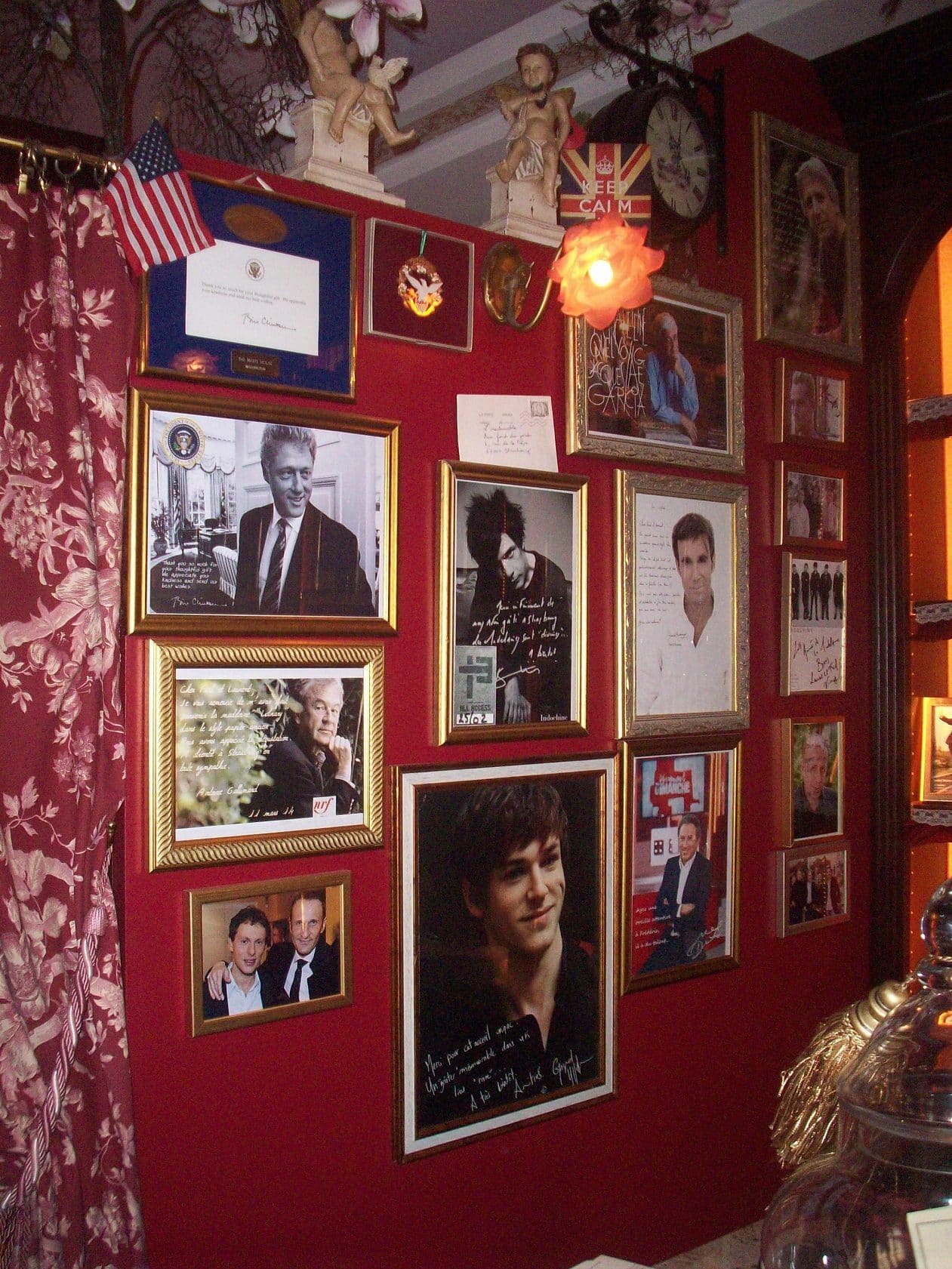 Quelques murs du salon de thé sont ornés de nombreux cadres avec des photos de personnalités et la retranscription de leurs petits mots de remerciement et d’admiration. Une photo et un mot de Bill Clinton apprennent au public qu’il a lui aussi eu droit à sa petite madeleine, après que Frédéric eut travaillé pour une mission de décoration pour Hillary Clinton dès 1998. Aujourd’hui, c’est l’ambassadrice américaine à Strasbourg qui se voit envoyer les madeleines de Laurent Renaud.