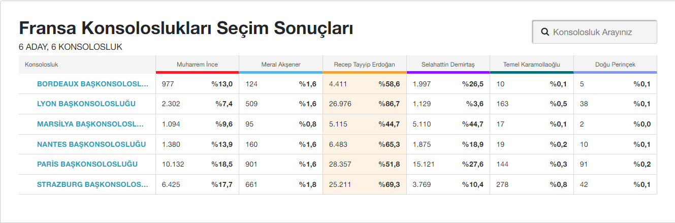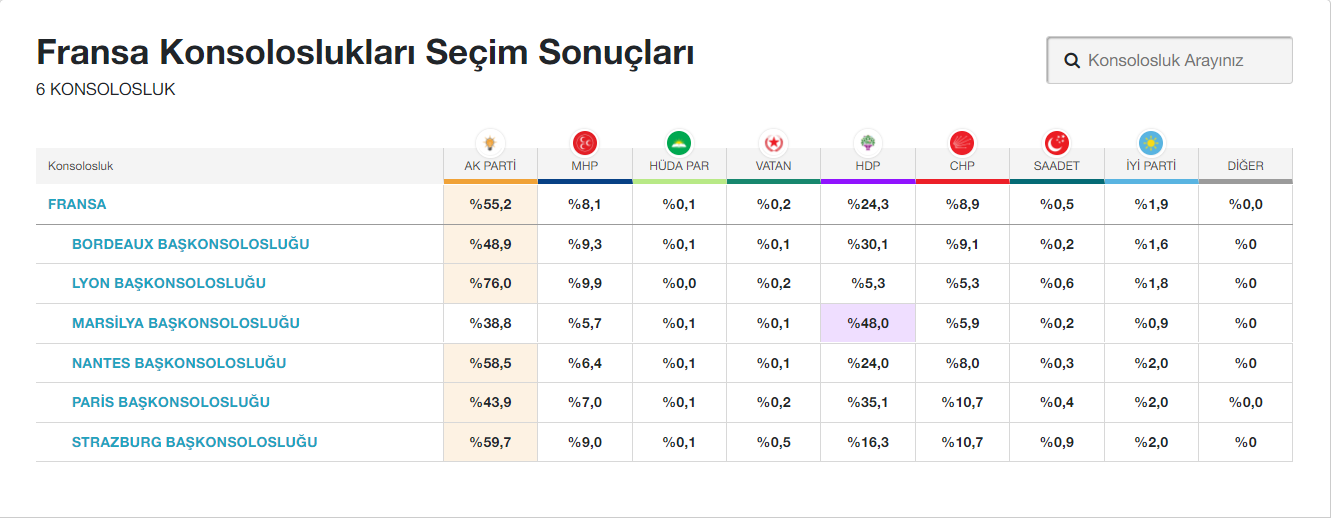 Pour les élections des députés, près de six électeurs sur dix ont voté pour le parti de Recep Tayyip Erdoğan, l’AKP, au bureau de vote strasbourgeois. C’est la deuxième circonscription pro-AKP en France. À Lyon, 76% des citoyens ont versé en bulletin en faveur du parti présidentiel.