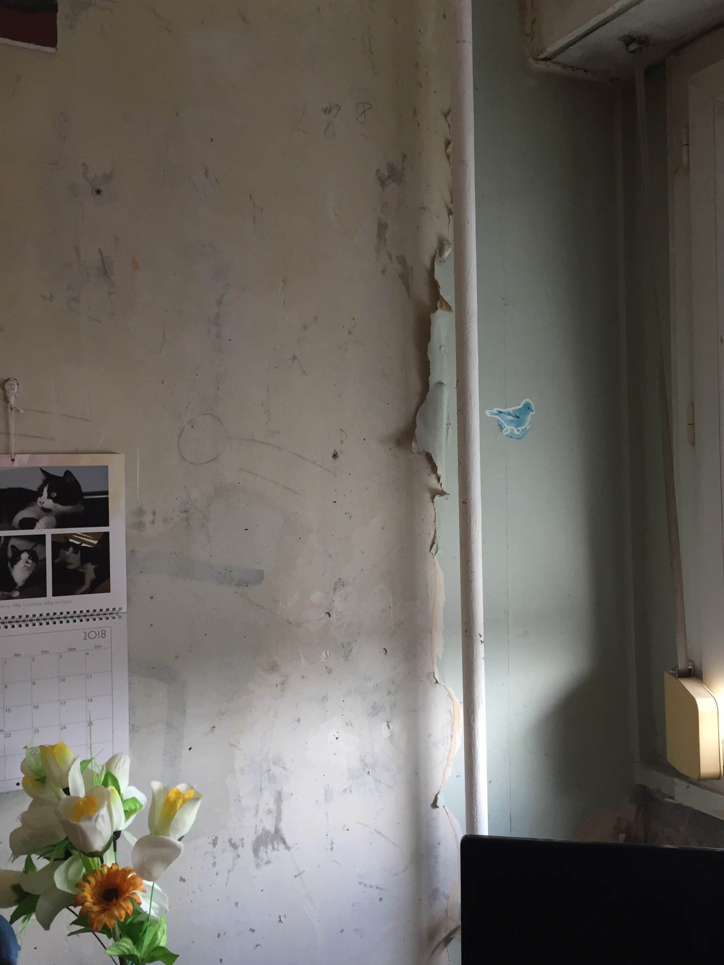 Dans l’appartement règne une forte odeur d’humidité. Le papier peint se décolle des murs : « J’ai essayé d’en coller plusieurs fois, mais il tombe systématiquement au bout de quelques jours. La peinture, sur le mur d’en face, était jaune. Elle est devenue orange à cause de l’humidité », explique Fernand :