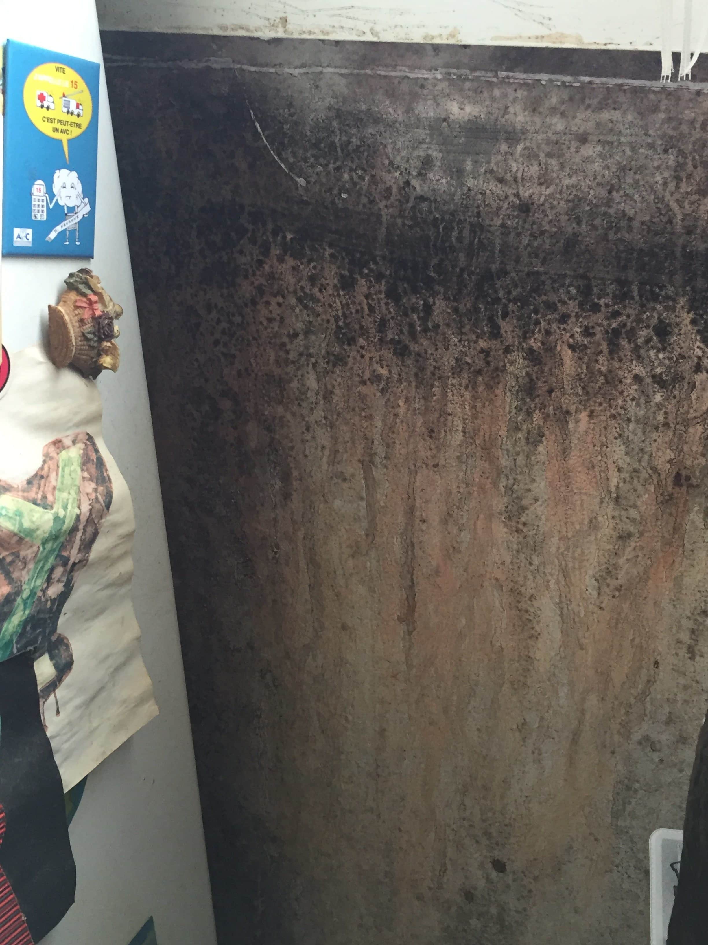 Chez les voisins d’en-dessous, c’est à peine mieux : les murs de la salle de jeu des enfants sont noirs de moisissures. Là encore, le papier peint se décolle. Caroline, la maman, a dû jeter plusieurs meubles, abîmés par l’humidité des murs.