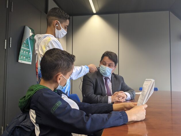 Au collège de l’Elsau, il n’y a pas de cantine. Trois collégiennes (Khadija, Runaz et Emmanuelle) ont interrogé la principale de leur établissement pour comprendre cette infrastructure absente. Michèle Steible a d’abord rappelé que le collège Hans Arp n’a jamais eu de cantine. La grande majorité des collégiens vient du quartier de l’Elsau, situé à cinq minutes à pied. Ils rentrent donc tous chez eux pour le déjeuner. « Pour ceux qui n’ont pas la possibilité de rentrer chez eux, nous avons un partenariat avec le Centre de Ressources d’Expertise et de Performance Sportive (CREPS). Nos élèves inscrits en demi-pension prennent donc le bus à midi et bénéficient de la cantine des jeunes sportifs de haut-niveau », décrit Michèle Steible.