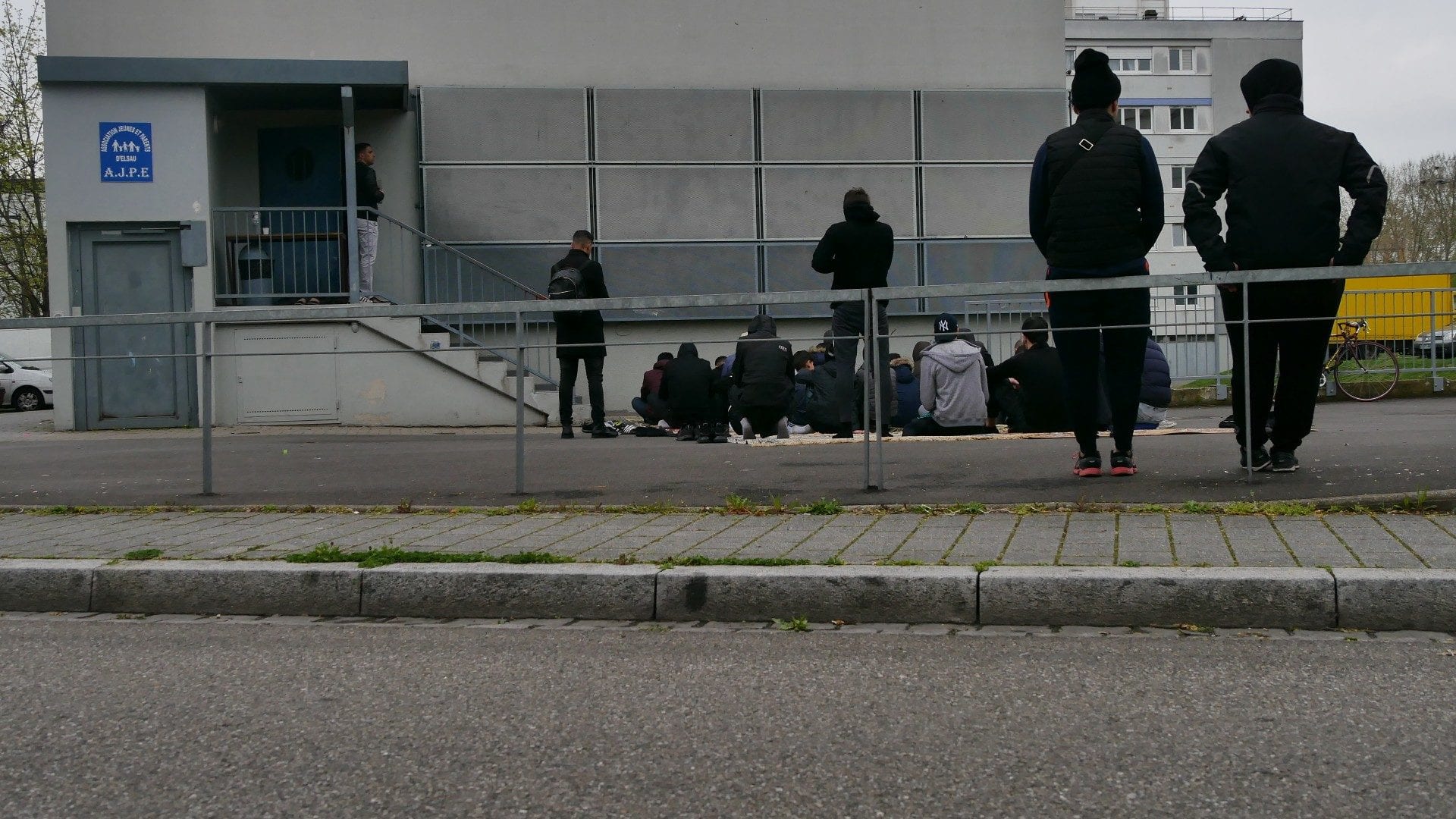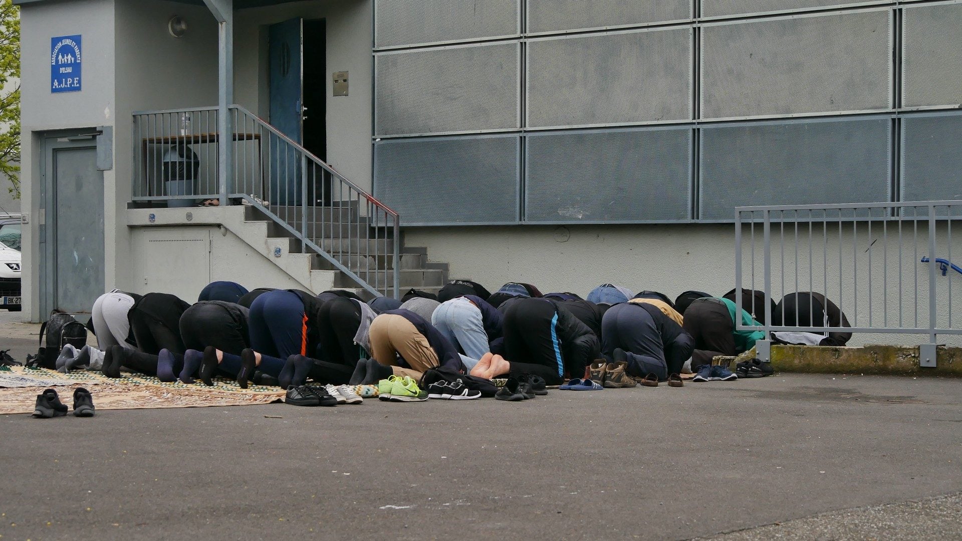 Cette fréquentation, habituelle le vendredi, ne respecte pas les normes de sécurité. Le bailleur social CUS Habitat l’a rappelé à l’Association des jeunes parents de l’Elsau (AJPE) dans un courrier daté de novembre 2018 : le local ne peut accueillir plus de 100 personnes. Vers 14h, ils sont près de 200 à prier. Une trentaine d’entre eux ont dû rester dehors. Ils s’agenouillent sur des tapis posés sur le béton. Une enceinte diffuse le prêche.