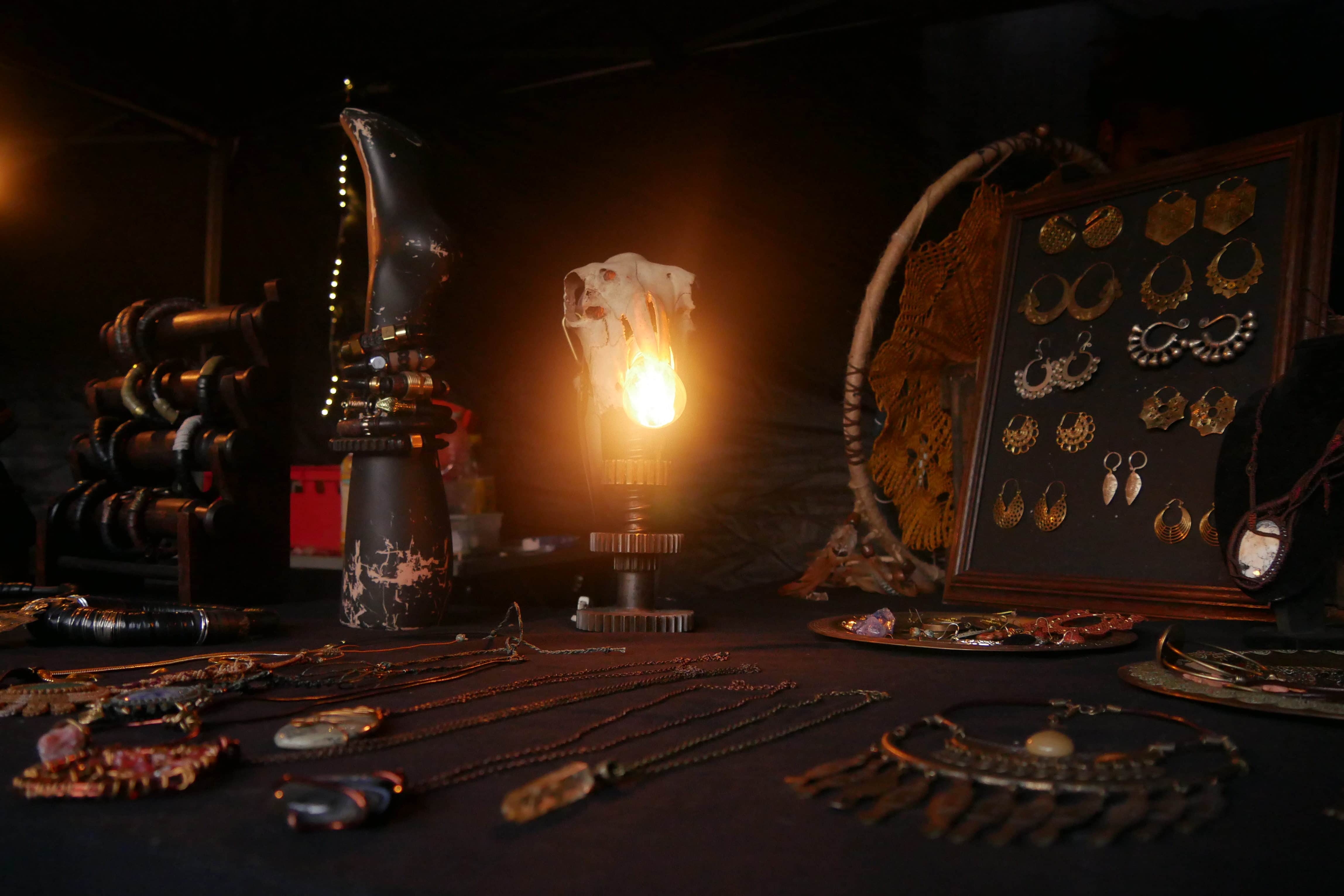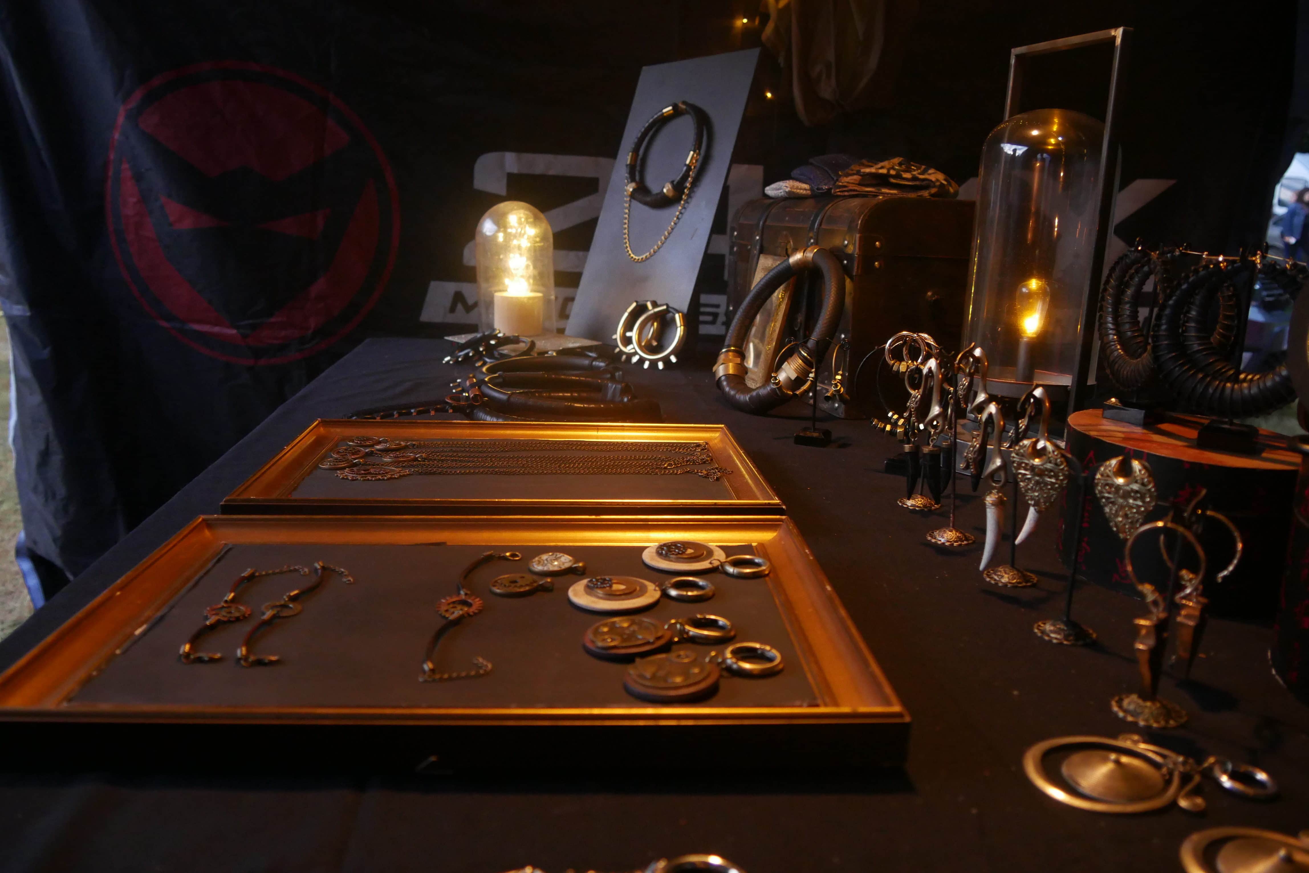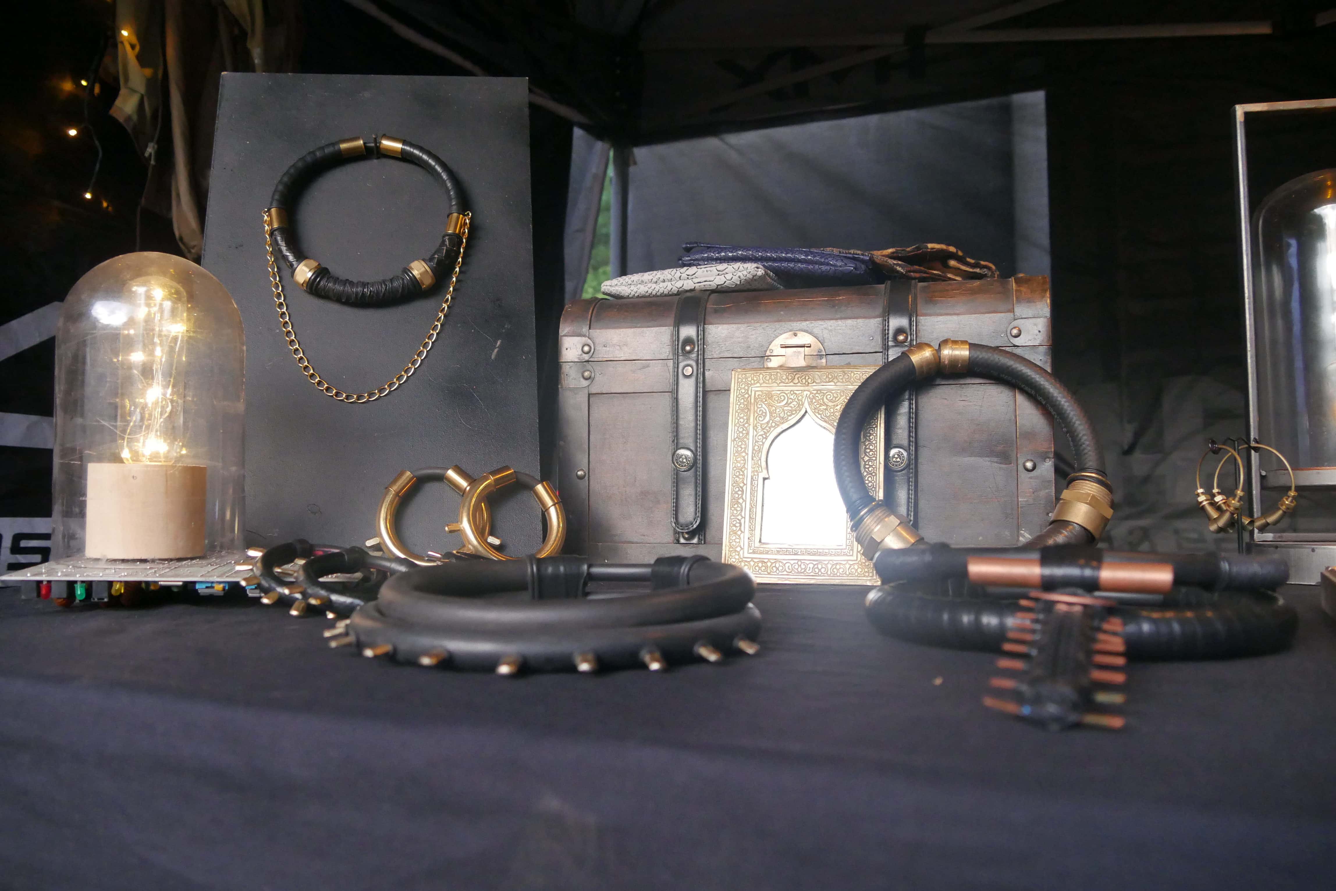 De l’autre côté de la clairière, Gaëlle tient un stand de bijoux faits de courroies, de tuyaux d’arrosage, de cuir et de joints de plomberie. Pour cette ancienne étudiante en arts plastiques, tout a commencé avec les free parties il y a cinq ans :