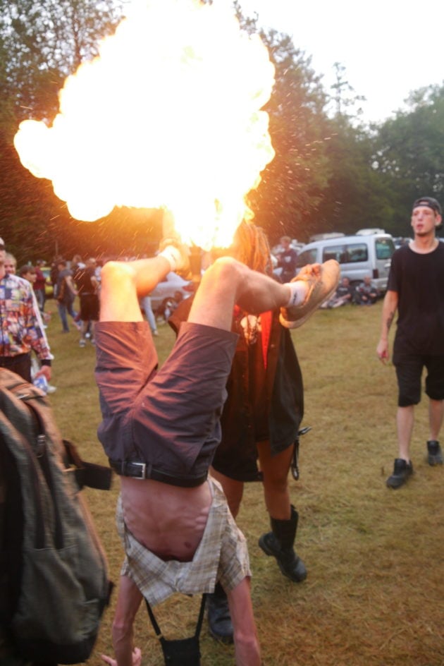 « Regardez mes poches (pleines de mégots, ndlr), nous on ne jette pas nos clopes. À la fin de la teuf, tout le monde se met en ligne derrière un camion pour ramasser des déchets jusqu’à ce qu’il y ait plus rien. Du coup, tout est propre. C’est pour ça que souvent les propriétaires acceptent de nous louer leur terrain. Alors qu’un festival, tout est sale à la fin. »