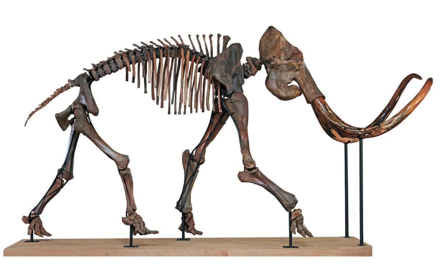 Le spécimen choisi pour l’œuvre de Jacques Rival, en position de marche, est unique car sa taille le classe parmi les plus grands disponibles, il est très bien conservé avec plus de 80% d’os originels et ses défenses aux teintes caramel et ivoire sont gigantesques et également très bien conservées.