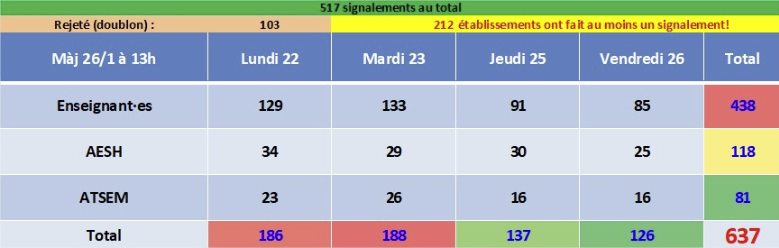 « C’est un chiffre a minima », assène Pierre Friedelmeyer, le délégué syndical qui a mis en place l’outil de recensement. Une carte interactive a été créée et permet de consulter les établissements les plus touchés par le manque de remplaçant. Pendant les cinq jours de la semaine scolaire, le syndicat a étudié les formulaires, trié les doublons et estimé à 637 le nombre d’enseignants, Atsem ou AESH non remplacés entre le 22 et le 26 janvier 2024 inclus.