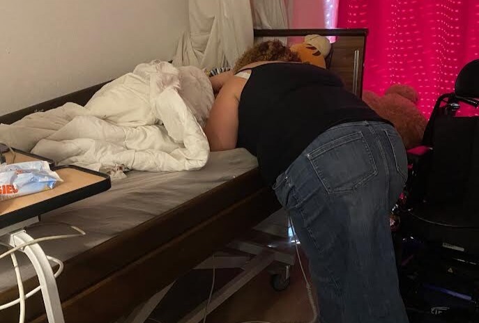 Comme tous les matins, Nassera Souelmi embrasse le front de son fils pour le réveiller. Penchée sur Naïm qui ouvre doucement les yeux, la maman caresse les cheveux bouclés du jeune garçon puis baisse la barrière de sécurité du lit médicalisé dans lequel il dort toutes les nuits. « Allez, t’es prêt ? », lui lance t-elle, avant d’envelopper de ses bras le corps de son fils. Elle le soulève, le porte, et le dépose dans son fauteuil roulant électrique.
