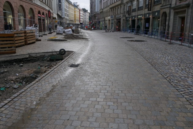 La nouvelle rue du 22-Novembre, avec certains flux dissociés sera-t-elle inaugurée le 22 novembre pour le Marché de Noël ? Photo : Guillaume Krempp / Rue89 Srasbourg