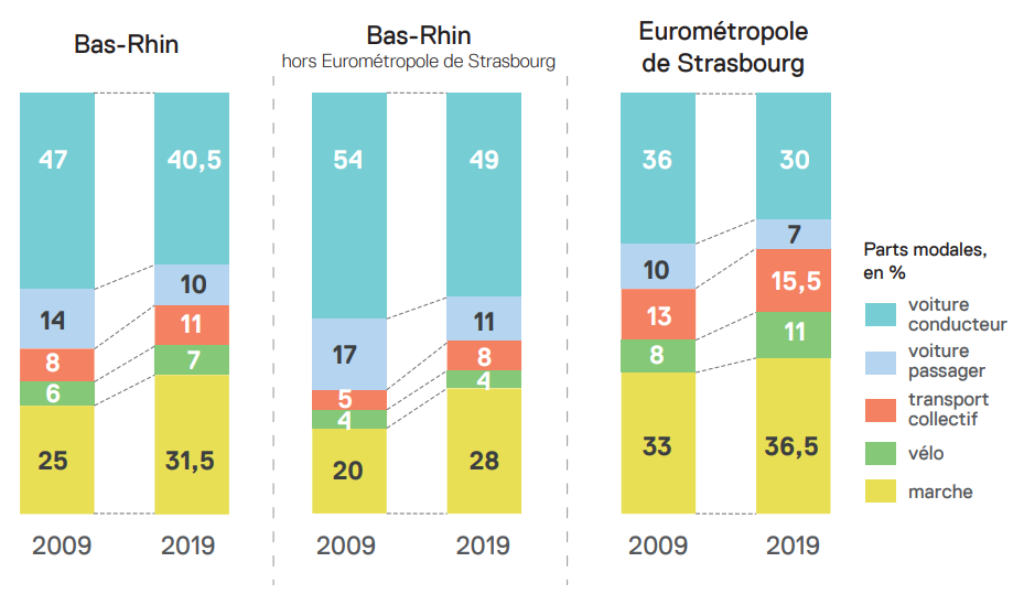 « Derrière chaque point gagné sur la voiture, ce sont de très nombreuses émissions polluantes qui sont évitées. Ainsi en 10 ans, les véhicules accédant Strasbourg sont passés de 340 à 240 000 véhicules par jour. C’est considérable même s’il faut persévérer. »