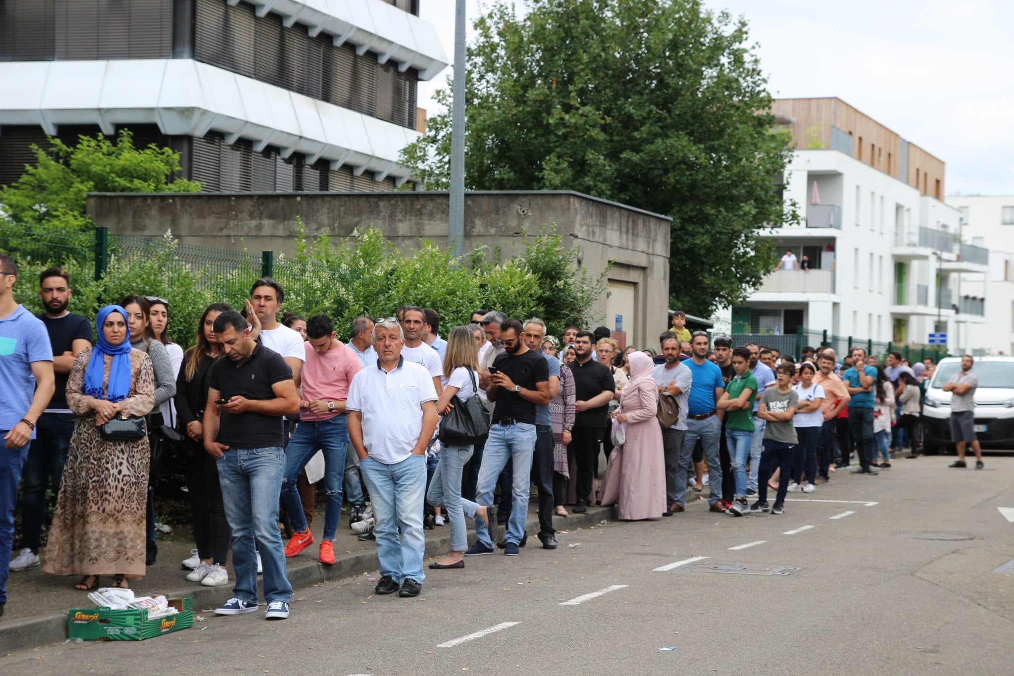 Samedi 9 juin, quartier de Hautepierre à Strasbourg, les voitures défilent dans la rue Thomas Mann. Par petits groupes, les électeurs turcs rejoignent la queue devant le bâtiment de l’association islamique Ditib. Passé le premier vigile, ils traversent une tente et font face à l’entrée du bureau de vote. Un drapeau turc flotte devant la fenêtre du premier étage. Les soutiens du HDP, pro-kurde, grincent des dents face à ce « symbole du nationalisme turc. »