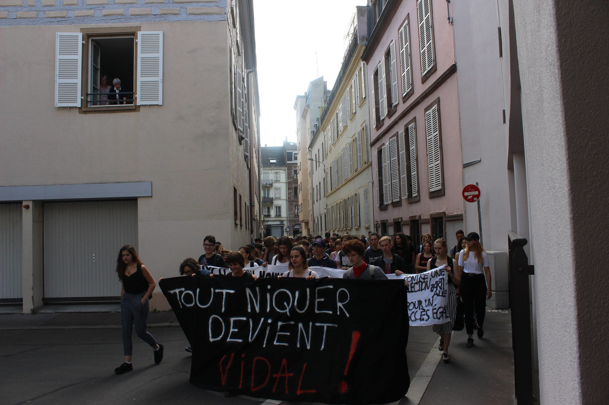 Les délégations des différents lycées se sont rejoint au fur et à mesure, comme sur la place de la République, avant de converger devant le Rectorat, près des Halles. Devant l’institution, bien gardée par plusieurs policiers, ils ont entonné quelques slogans, avant de partir 5 minutes plus tard. Le cortège était encadré par quelques policiers en scooter pour organiser la circulation et superviser l’avancée du groupe.