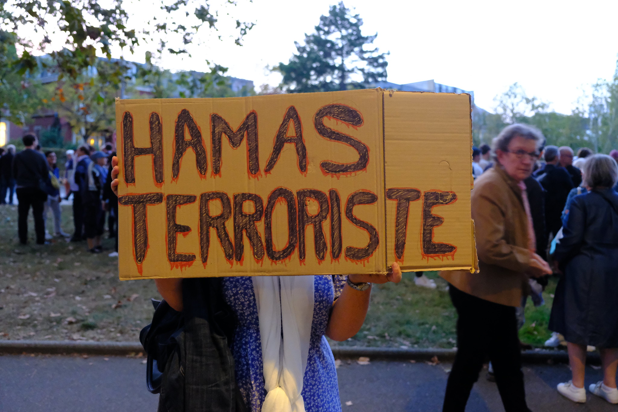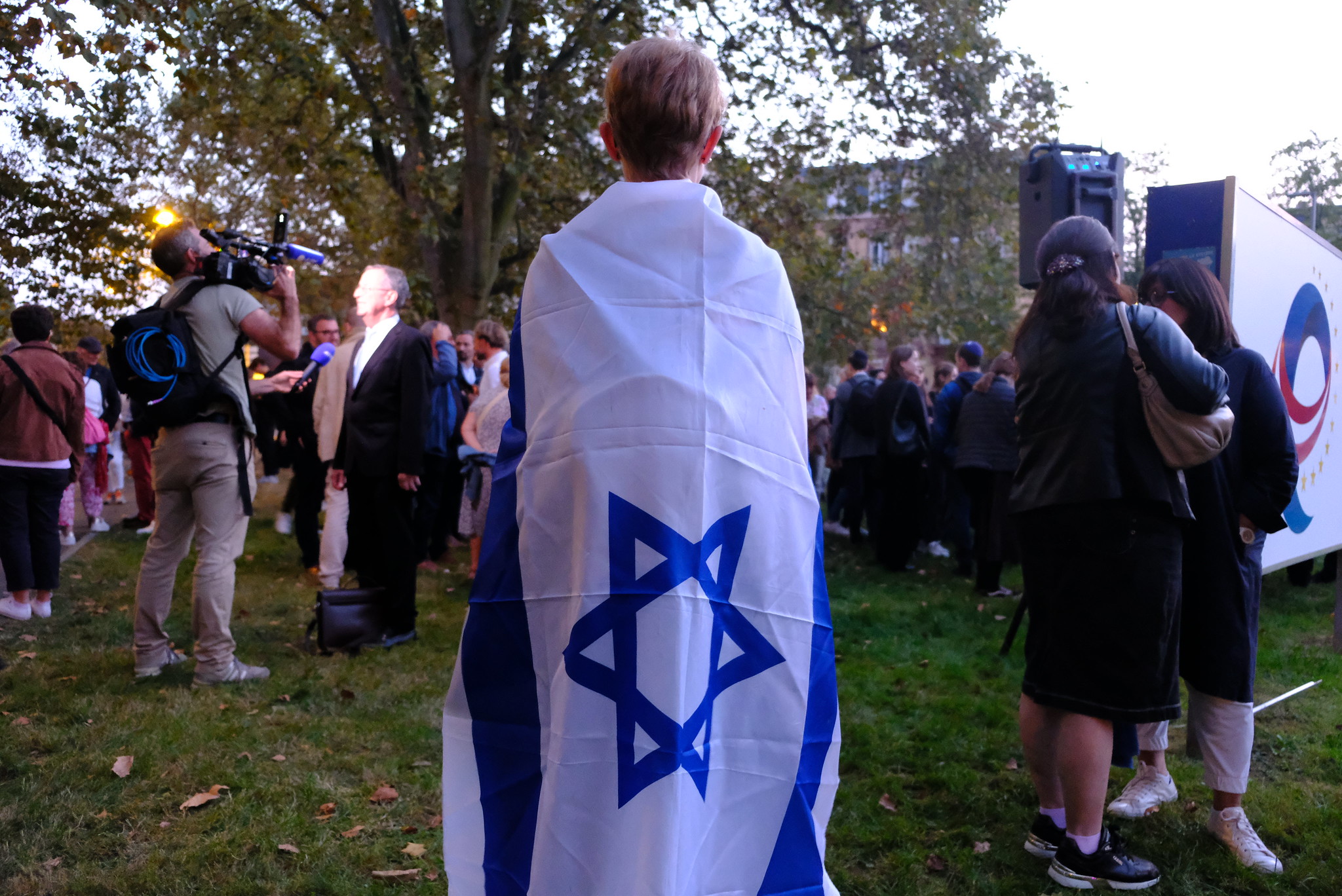 Les prises de parole se sont conclues par La Marseillaise et la Hatikva, l’hymne d’Israël. Au moment de la dispersion, Valérie, 52 ans, qui se définit comme juive, sioniste (mouvement politique prônant la construction d’un État juif en Palestine) et strasbourgeoise, résume :