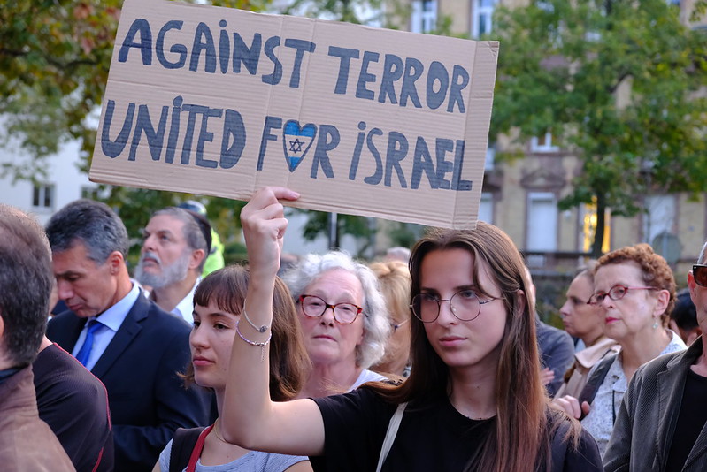 « Je ne peux pas répondre, je n’arrive pas à parler depuis deux jours. » Parmi les quelque 600 participants au rassemblement de soutien à Israël lundi soir devant le siège du Conseil de l’Europe, l’émotion était palpable. Au lendemain d’un week-end apocalyptique, qui a vu le Hamas faire plus de 800 morts et 2 600 blessés en Israël, plusieurs familles juives sont traumatisées. La plupart se sont déjà réunies dimanche soir devant la grande synagogue de Strasbourg, à l’appel du consistoire israélite du Bas-Rhin, et prévoient de le faire chaque soir, tant que les otages pris par le Hamas ne seront pas libérés.