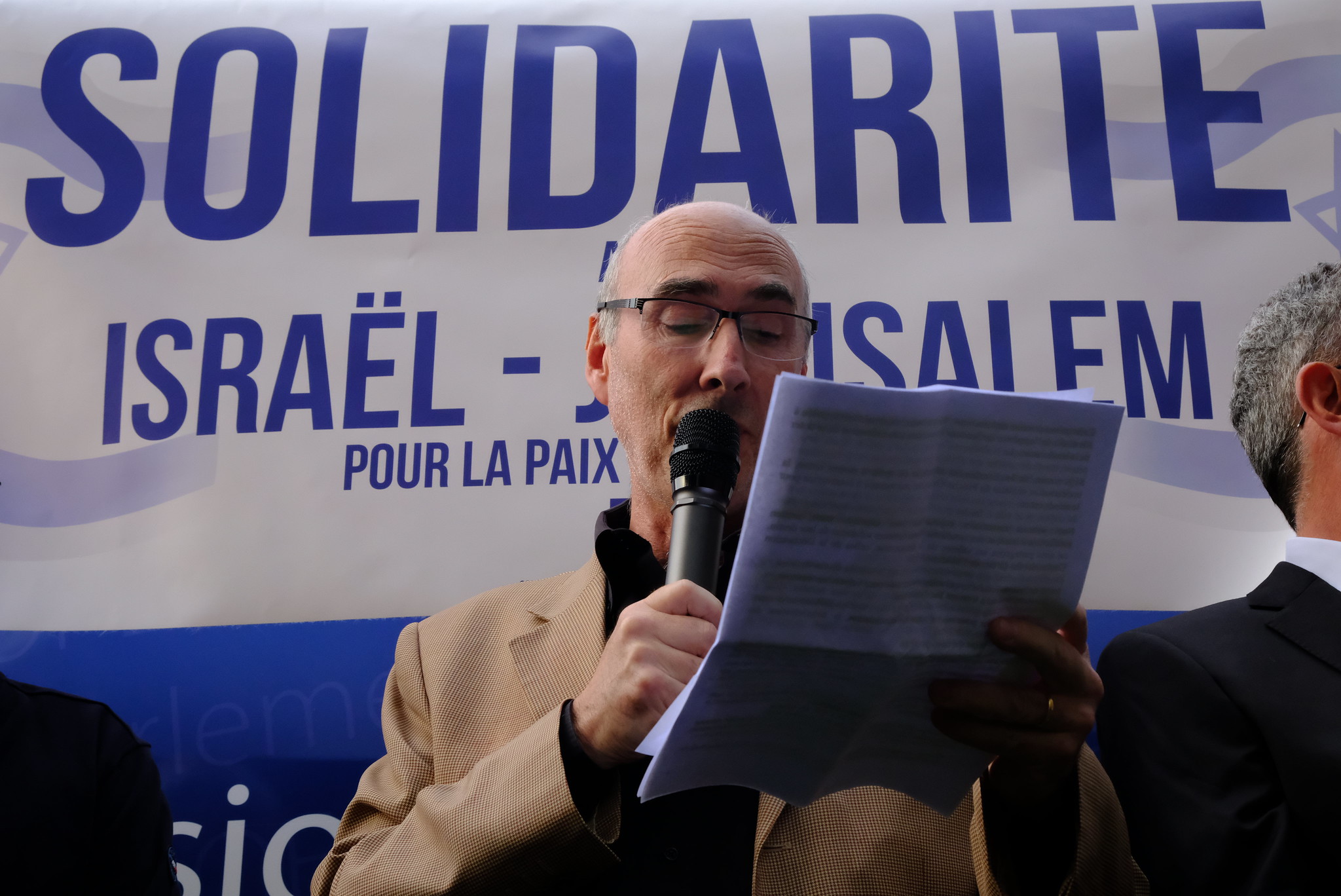 Malgré une sono poussive, Thierry Roos, président de l’association France – Israël, a rapproché les combats d’Israël de ceux pour les valeurs européennes et démocratiques :