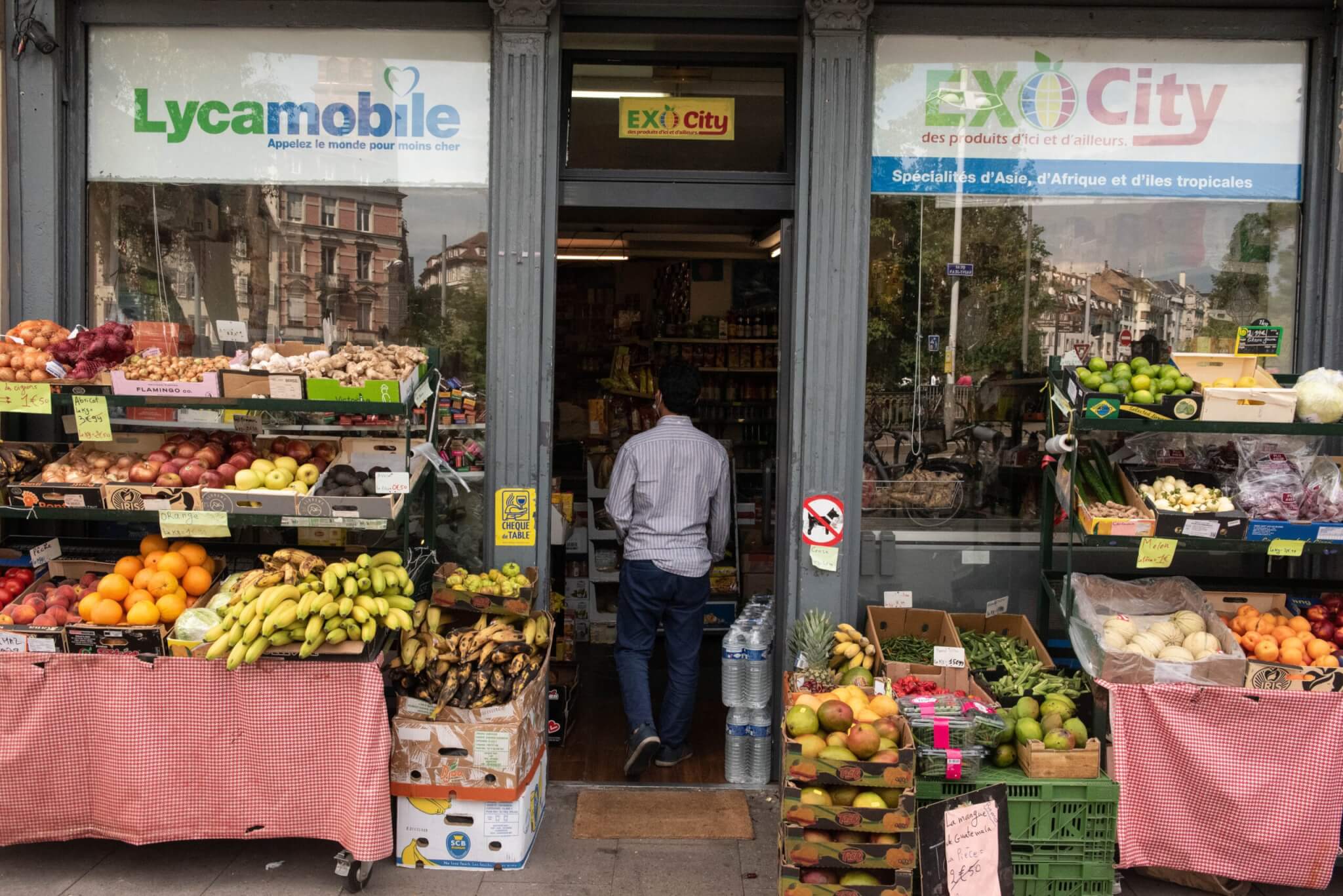 Akhtar réapprovisionne son étal avec application. « Il faut que ça soit attractif pour le client », lâche le gérant de l’épicerie Exocity, en plaçant les plus beaux fruits au-dessus des autres quai Saint-Jean. Depuis onze ans, le commerçant originaire du Bangladesh répète les mêmes gestes, chaque jour. À l’intérieur, employés et clients tentent de se frayer un passage entre les sacs de riz de 10 kilos et les cartons de patates douces. Au milieu de ce joyeux bazar, Akhtar allume un bâton d’encens avant de vider les arrivages de légumes du matin.