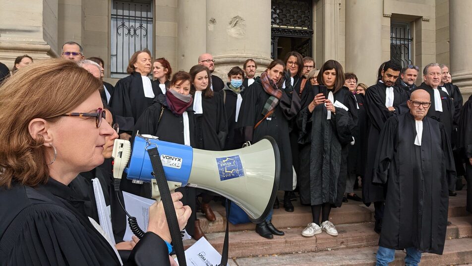 Une centaine de magistrats, greffiers et avocats s’est rassemblée mardi devant le Palais de justice de Strasbourg à l’appel de plusieurs organisations syndicales. Les participants ont dénoncé les trop faibles moyens accordés à la justice et les conséquences délétères qui en résultent, pour tous les professionnels et les justiciables.