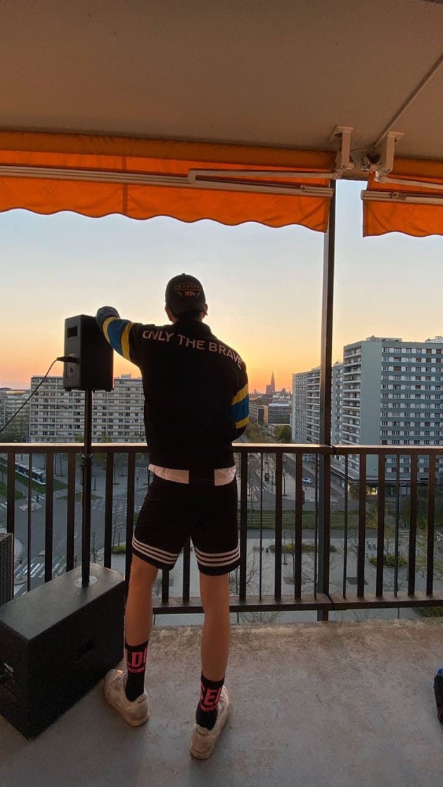 Les deux grosses enceintes d’une puissance de 5 000 watts dirigées vers la place de l’Esplanade balancent la musique. Sur leurs balcons ou à leurs fenêtres, les riverains se mettent à danser, agitent les flashs de leurs téléphones portables ou sont juste là, pour profiter de la musique et sortir un peu du confinement, pendant 20 minutes. Sur la place de l’Esplanade, quelques livreurs à vélos s’arrêtent, dégainent leur smartphone pour filmer, puis repartent.