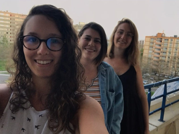 « Un soir, d’un coup, il y a eu de la musique, on ne savait pas d’où ça venait, ça nous a fait des frissons. On est sorties sur le balcon et on a filmé », se souvient Marion, 24 ans. Cette doctorante en biochimie habite de l’autre côté de la place de l’Esplanade, avec Mégane et Noémie, ses deux colocataires. Elles ont posté leur vidéo sur le groupe Facebook Tousse Ensemble, créé au début du confinement par le site web Pokaa. C’est comme ça que le lien avec Thomas s’est fait, raconte Marion :