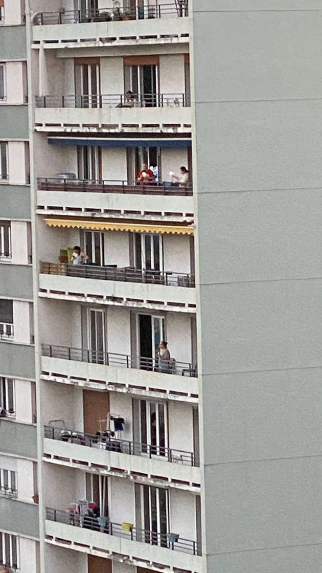 « Ça tisse un lien », abonde Pierre. Cet ingénieur de 62 ans habite l’appartement juste au-dessus de celui de Thomas. Tous les soirs, avec sa femme et son fils, il est au rendez-vous sur le balcon. Il vit à l’Esplanade depuis 27 ans, un quartier à « grande mixité sociale, entre HLM et appartements privés ». Pendant cette période du confinement, il se dit « privilégié » :