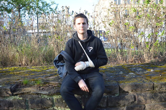 David, étudiant à Strasbourg, a dû être opéré dimanche 26 mars d’une fracture ouverte de la main à cause d’une grenade :