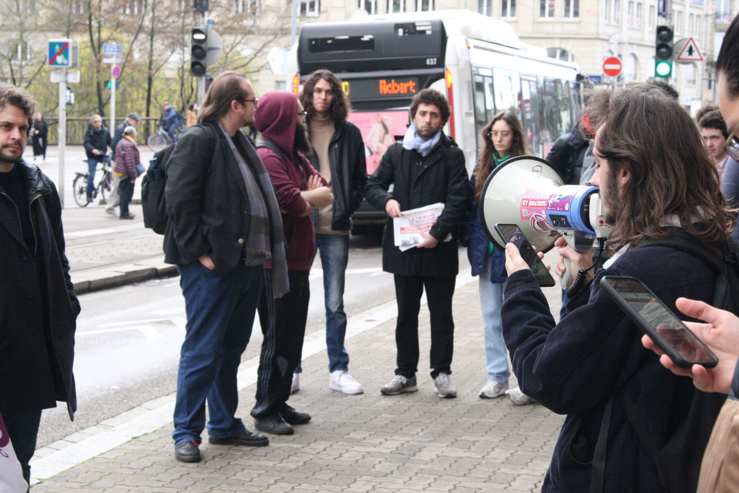 Mathieu Bellegeulle, secrétaire générale à la Communauté Solidaire des Terres de l’Est, siège le 13 mars au conseil d’administration du Crous qui doit entériner l’augmentation des loyers du Crous à Strasbourg : « Nous sommes ici pour interpeller l’ensemble des administrateurs du Crous et, peut-être, les convaincre. » Sans surprise, l’augmentation sera finalement votée le soir même, malgré l’opposition de l’étudiant de 22 ans et celle de Florian Kobryn (EE-LV), membre du conseil d’administration, conseiller départemental à la Collectivité européenne d’Alsace (CeA) et seul élu présent au rassemblement.