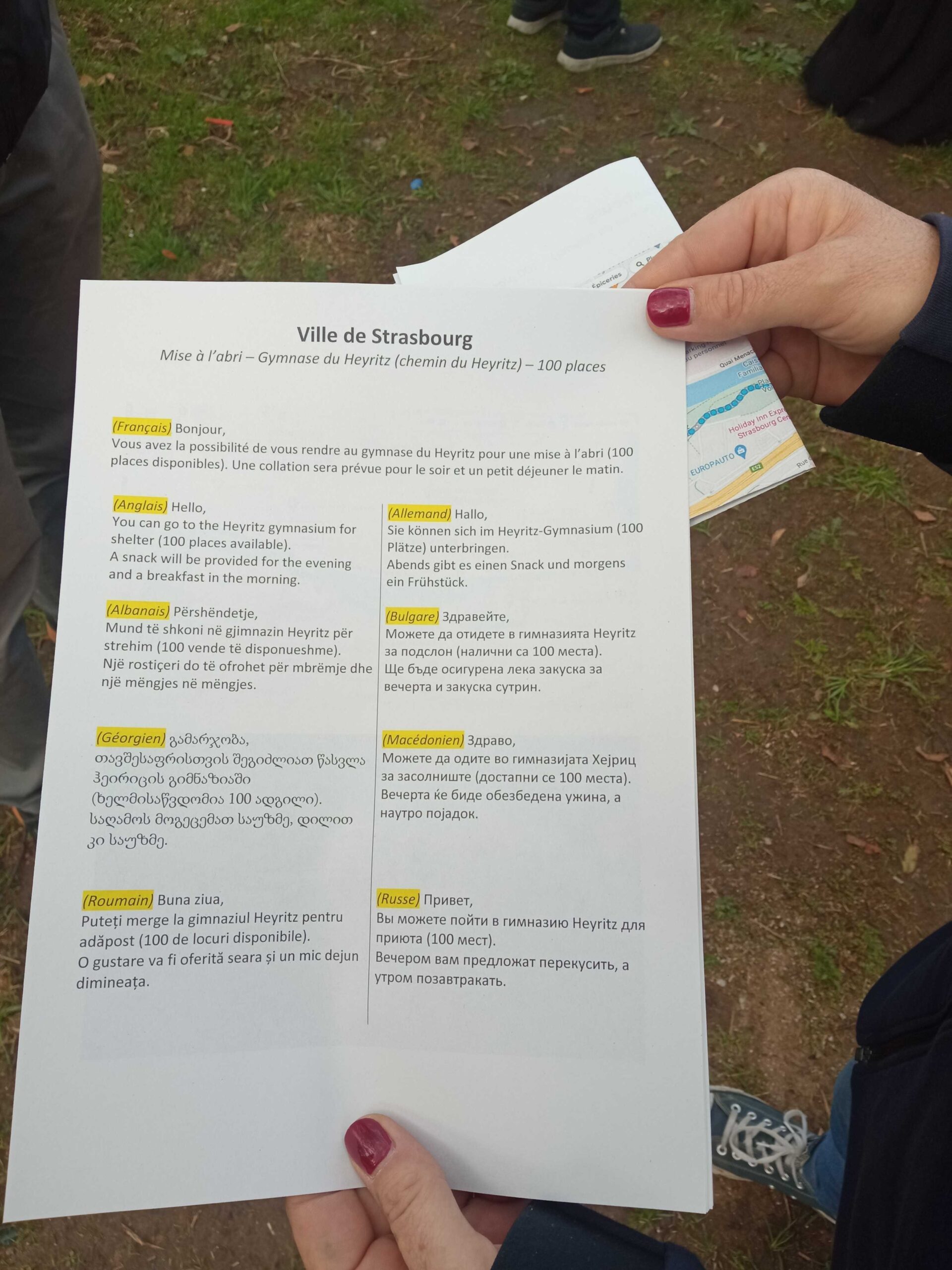 Les services sociaux sont arrivés sur place. Des personnes sans-abri craignent pour certaines d’être dirigées ensuite vers le centre d’hébergement de l’État à Bouxwiller. D’autres, primo-demandeurs d’asile, se réjouissent car elles pourraient y trouver un logement, au moins le temps que durera le traitement de leur dossier.