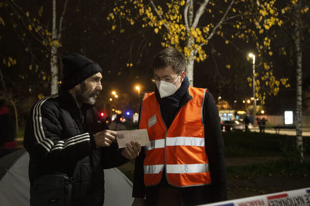 À sa plus forte affluence, fin octobre, le site comptait 200 personnes dont 43 enfants et de nombreux malades, quasiment tous migrants, originaires de Géorgie, de Roumanie, de Macédoine ou encore d’Afghanistan. Mardi matin, ils ne sont plus que 45, réveillés par les forces de l’ordre qui secouent doucement les tentes, parfois vides. « Certaines familles sont dans des voitures, des cages d’escaliers, pour se protéger du froid », indique Nicolas Fuchs, de la délégation bas-rhinoise de Médecins du Monde qui assiste à l’événement :