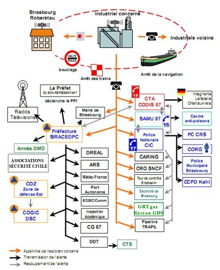- Pour s’informer, les autorités recommandent d’écouter la radio (France Bleu Alsace – 101.4 MHz) qui doit immédiatement interrompre ses programmes et qui est dans la boucle des premiers médias informés. L’Agence France presse est également dans la liste, ce qui assure une diffusion générale et rapide des informations auprès des autres médias.
