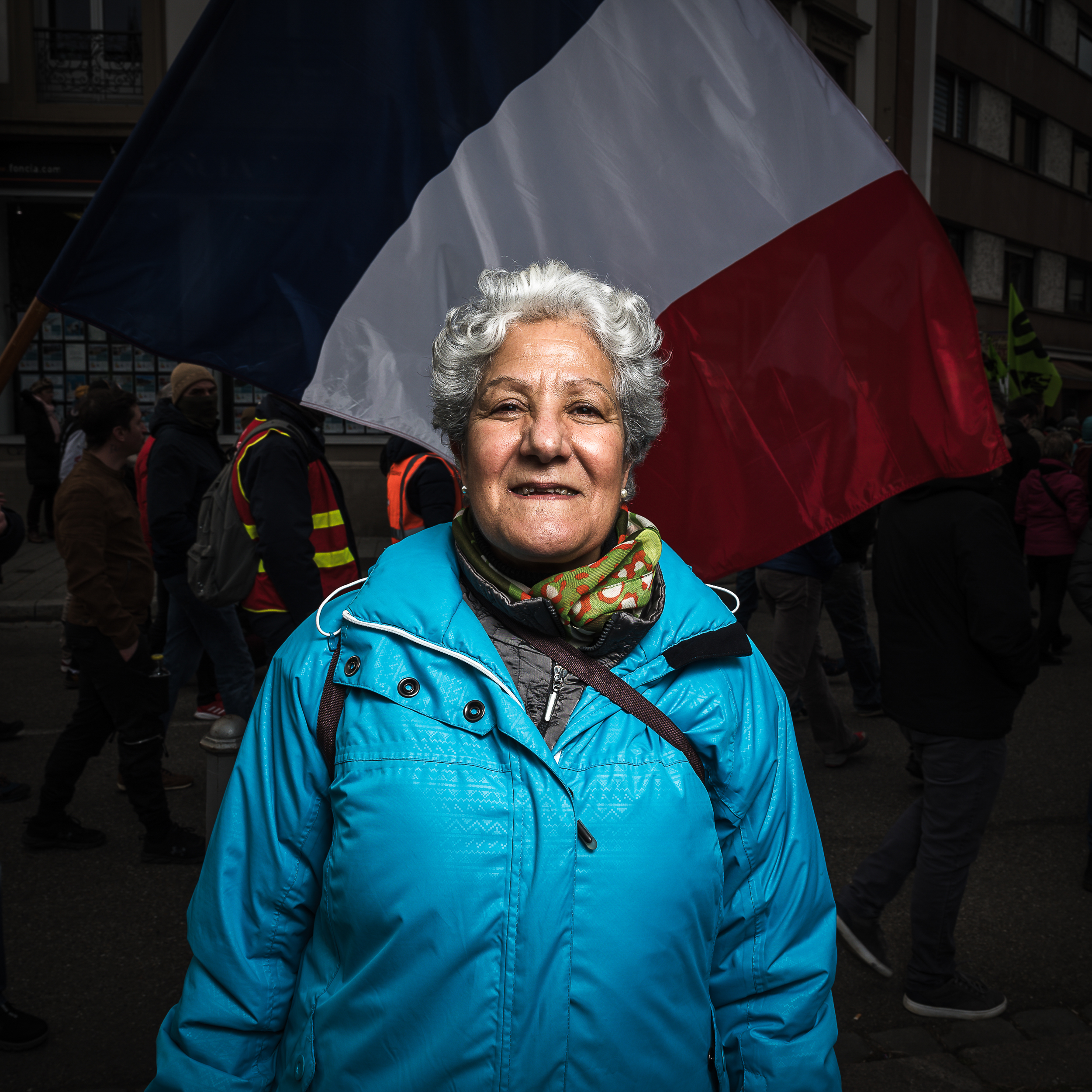 Le photographe strasbourgeois, collaborateur régulier de Rue89 Strasbourg et camarade de reportage d’Anne Mellier, a décidé d’amener son flash, ses parapluies réflecteurs et autres boites à lumière en pleine manifestation, avec un objectif : « rendre un visage à la foule des mécontents » en utilisant un matériel « habituellement réservé aux portraits de personnalités ».
