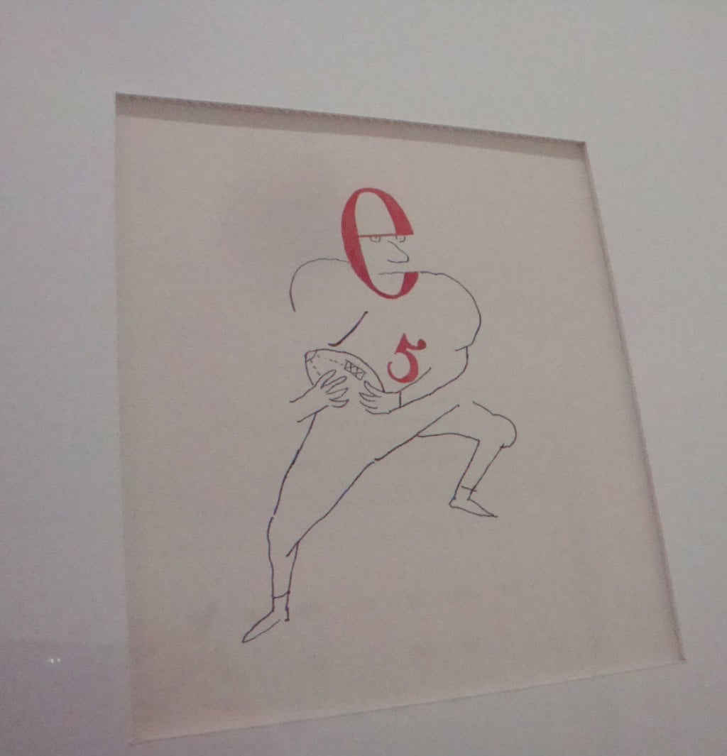 Enfin, clou de la collection, les abécédaires inédits illustrés par Tomi Ungerer lui-même. En 1960, il imagine d’abord des lettres à partir de figures humaines et de divers objets avant de se tourner, une dizaine d’années plus tard, vers un fin mélange entre les lettres et les personnages et animaux. Cet intérêt provient sûrement de son propre abécédaire Babar qu’il a si souvent feuilleté étant enfant.