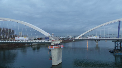 Pour chaque opération, les services de navigation allemand et français ont dû collaborer. Cette étape symbolique de mise en place du deuxième tablier marque une avancée dans ce projet binational. Roland Ries, maire de Strasbourg rappelle :