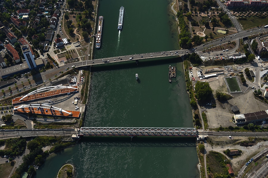 Les berges allemande et française seront reliées par un pont en arc. (Photo : AIRDIASOL / Rothan / cc)