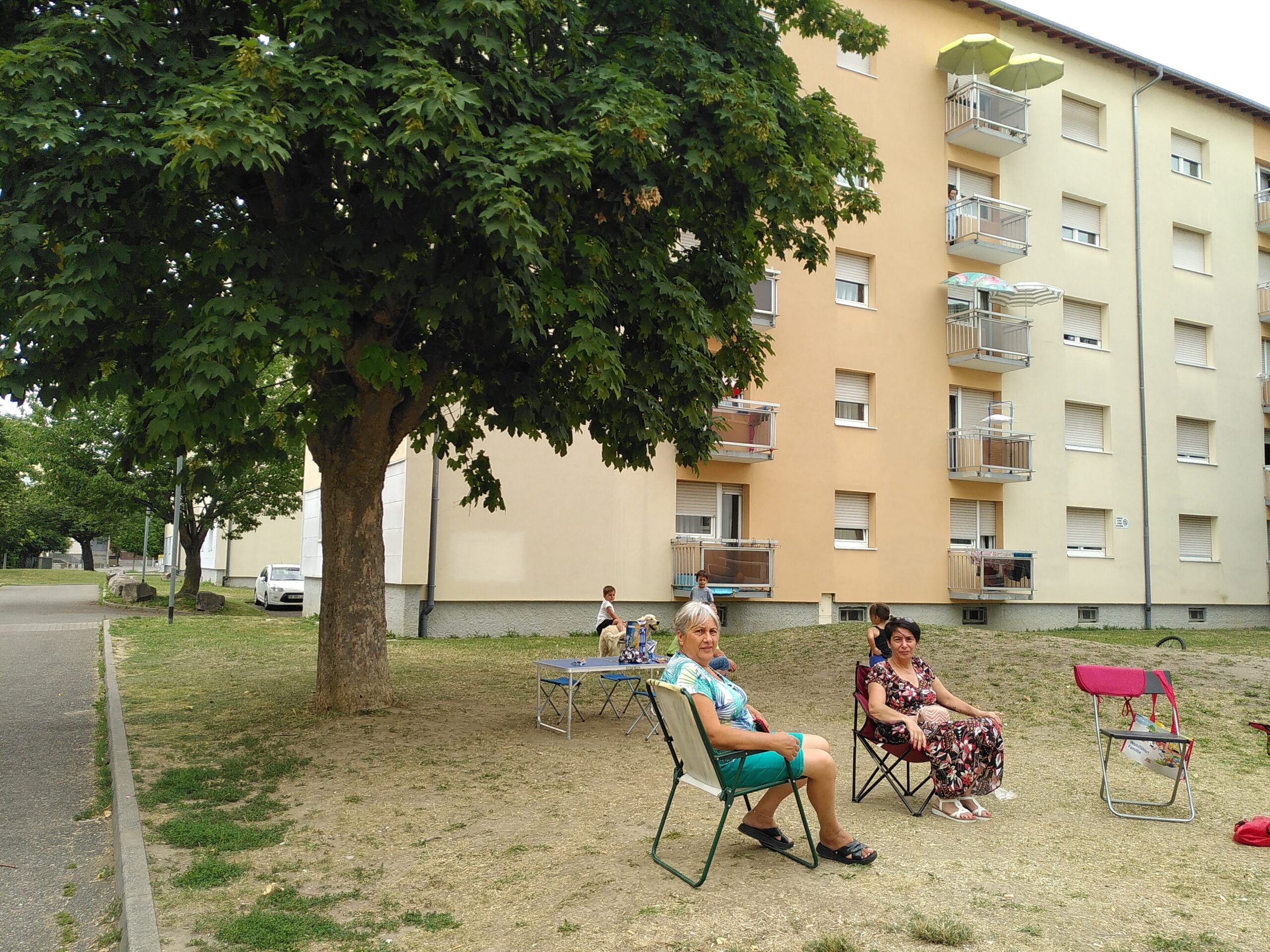 Entre Agnès et Cynthia, la doyenne Fresia pousse une exclamation en apprenant sur le moment que le tram F est étendu et passera dans sa rue : « Ah bon ? C’est plutôt une bonne nouvelle, à voir ce que ça donne », dit-elle du bout des lèvres.