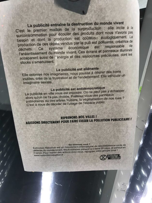 Selon l’association, s’en prendre à la publicité en ville répond à plusieurs revendications :