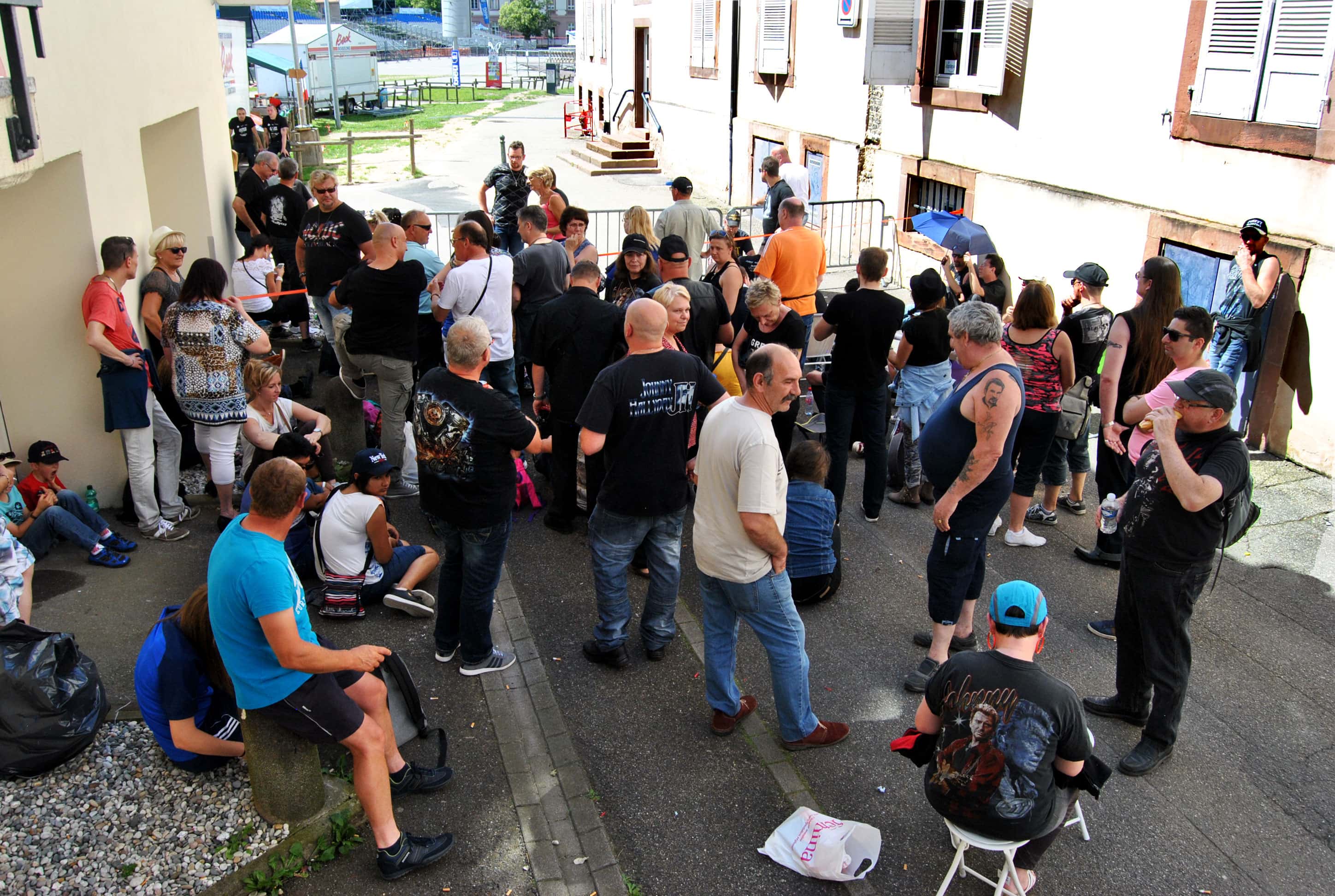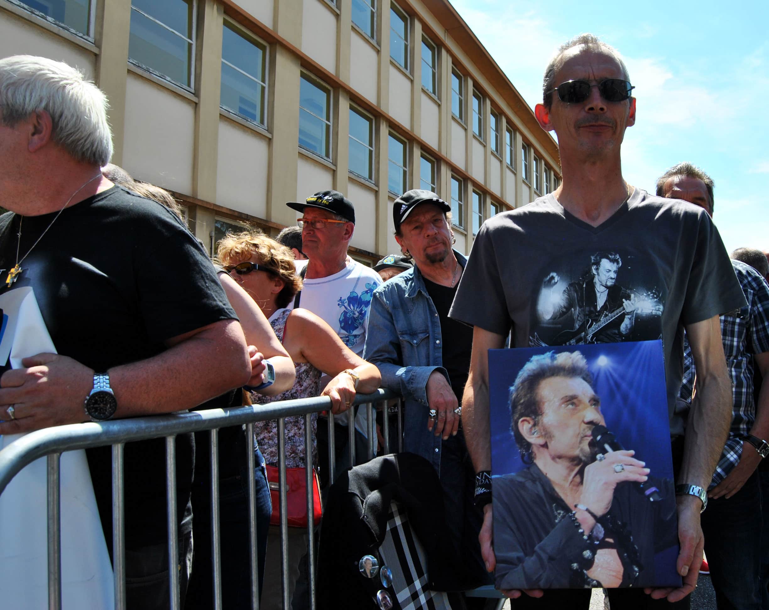 Jeudi 7 juillet, le soleil tape fort sur Haguenau. Le concert de Johnny Hallyday ne débutera que dans six heures. Pourtant, ils sont bien là. Ils attendent. Quelques-uns ont planté la tente à proximité, la veille, mais la plupart patientent depuis l’aurore. Pour sûr, les fans de Johnny sont fidèles : beaucoup expliquent suivre ses tournées depuis plus de dix ans. Ce sont les fans irréductibles, la garde rapprochée et joyeuse de l’incontournable rocker français.