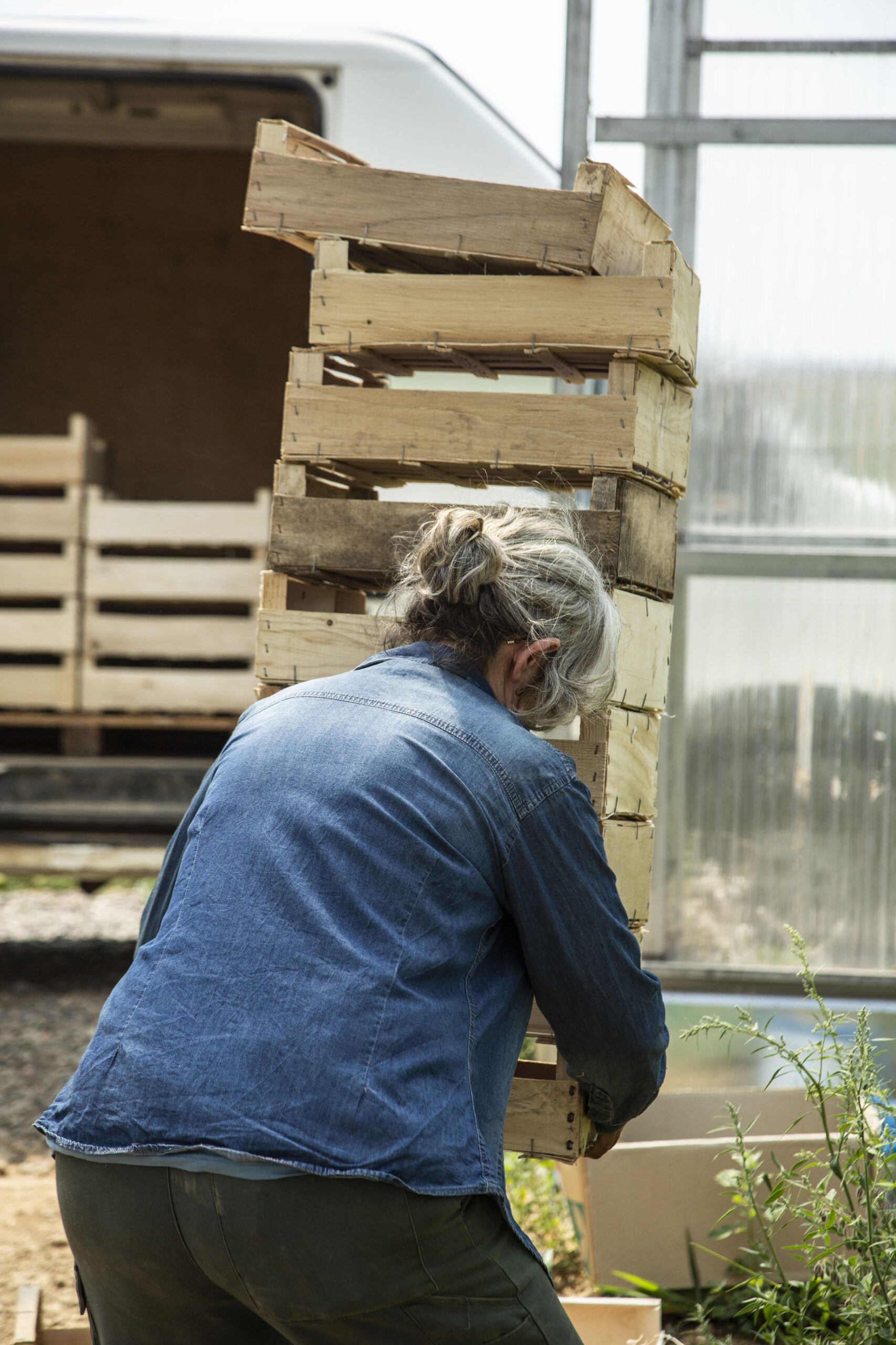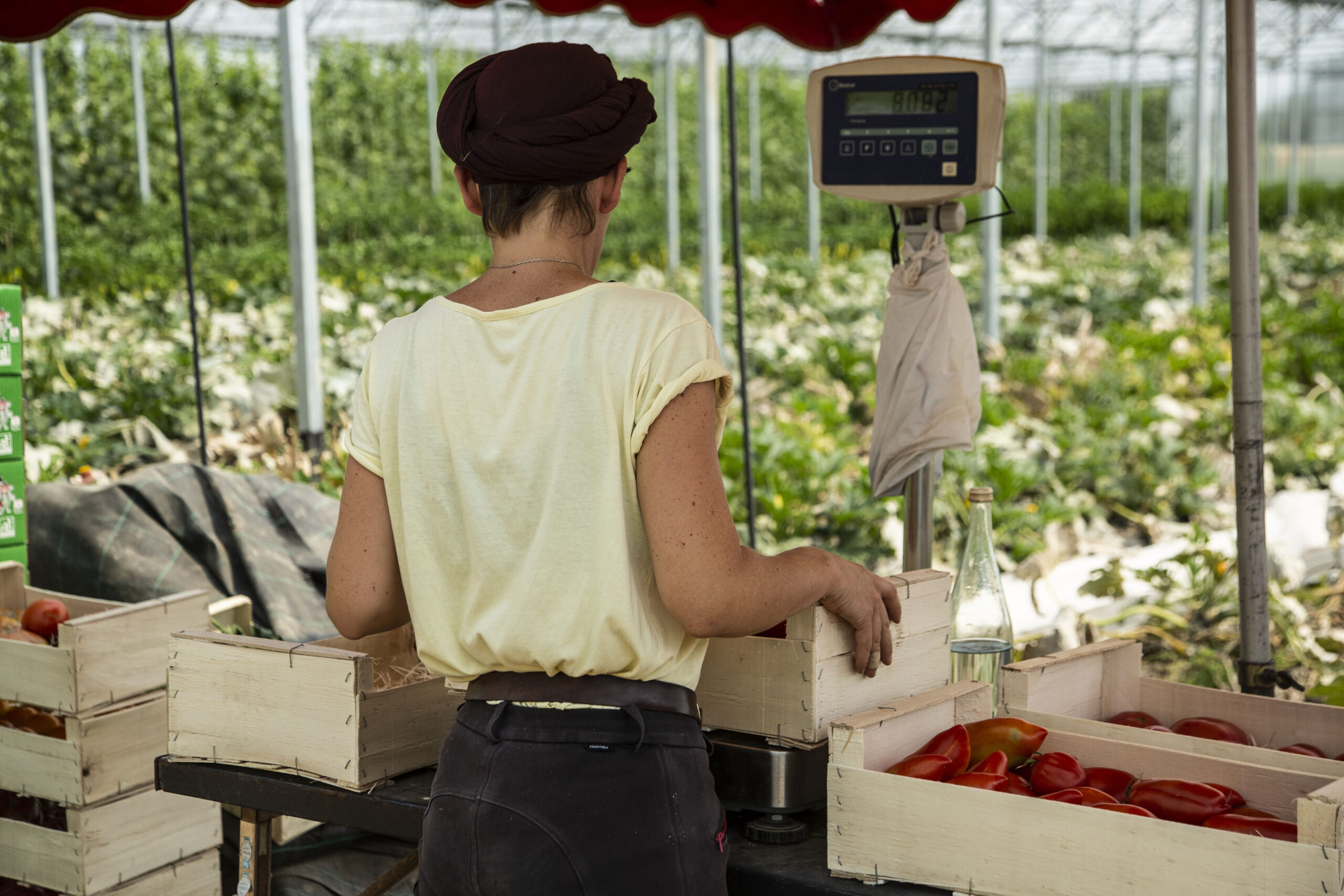 Florence prend les tomates une par une et les met sur la paille entreposée dans des cagettes. Elle soulève chacune d’elle, la pèse, puis la ramène au camion pour le transport jusqu’au hangar. Dans une journée et avec les allers-retours, l’employée estime porter une charge cumulée de deux tonnes. « C’est sport, mais j’aime bien », relativise-t-elle.