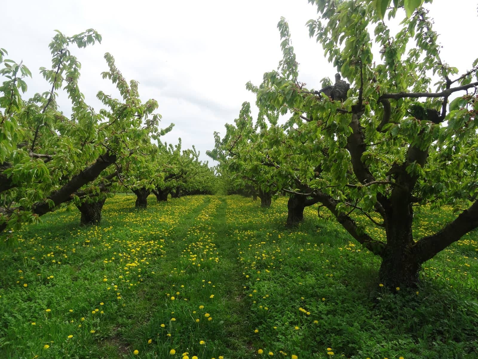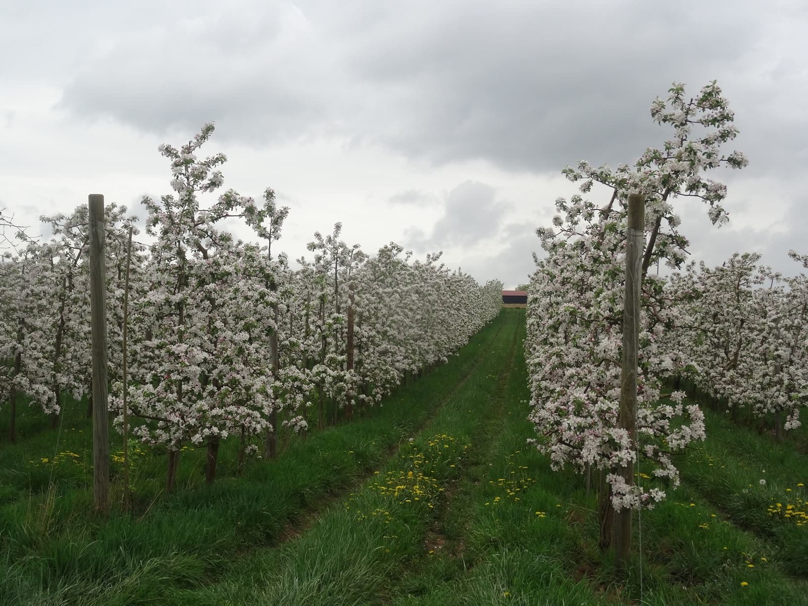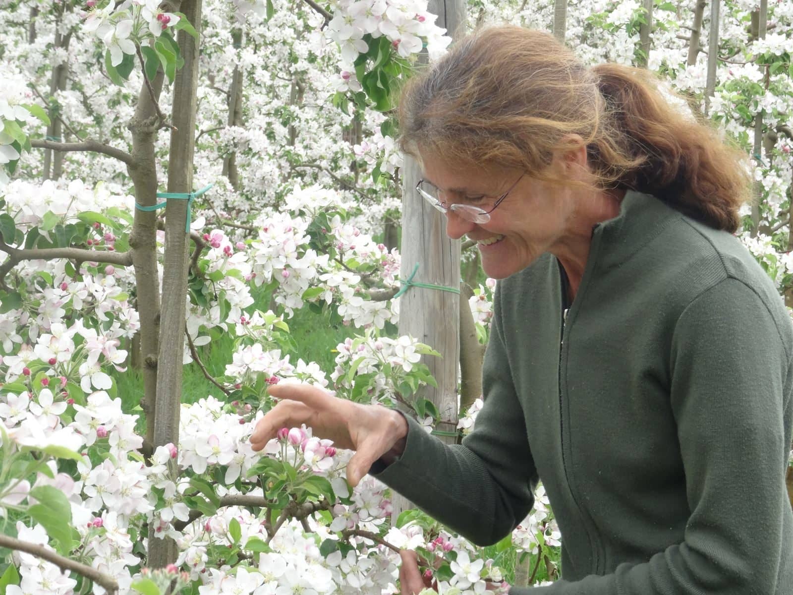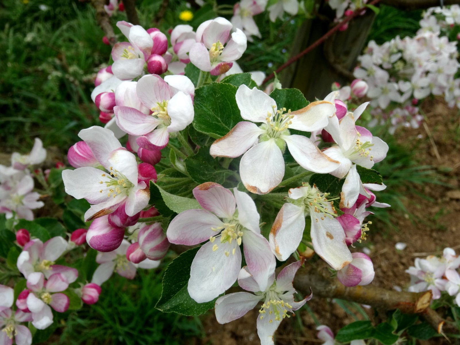 Malgré cela, tous les pommiers sont en fleurs, prêts à être pollinisés. D’après Evelyne, il n’y a pas besoin d’insecticides ou d’herbicides pour les protéger :