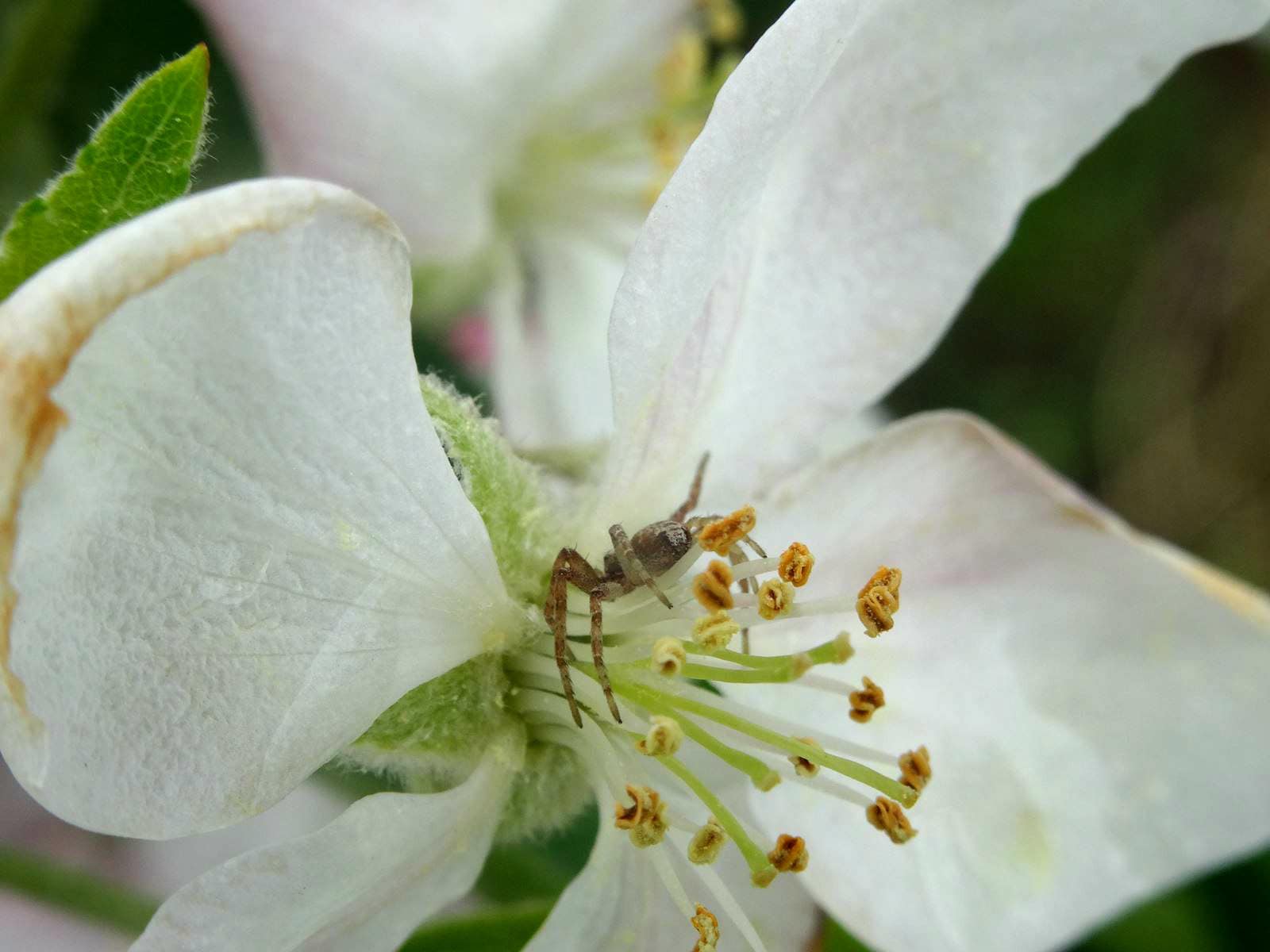 La présence de pollinisateurs est indispensable pour féconder, avec le pollen, les ovules de pommiers situés dans les fleurs. Les petits végétaux entre les arbres jouent donc un rôle important pour attirer les abeilles, guêpes ou autres espèces pollinisatrices. Des guêpes terricoles et solitaires qui creusent des nids dans le sol près des arbres se sont notamment développées. L’utilisation d’herbicides ou d’insecticides n’aurait pas permis ces phénomènes.