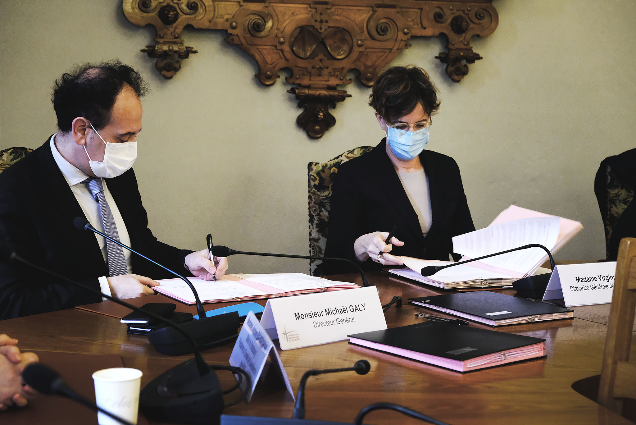 Un « contrat d’avenir » aux airs de plan de redressement. Dans la matinée du vendredi 18 mars, le directeur des Hôpitaux universitaires de Strasbourg (HUS) et la directrice de l’Agence régionale de santé (ARS) Grand Est ont signé un accord qui doit permettre à l’établissement hospitalier de retrouver une autonomie financière d’ici 2026. Autour d’une grande table d’un bois noble, Michaël Galy et Virginie Cayre ainsi que la préfète du Bas-Rhin Josiane Chevalier se sont félicités de cette « feuille de route opérationnelle » pour l’hôpital public strasbourgeois.