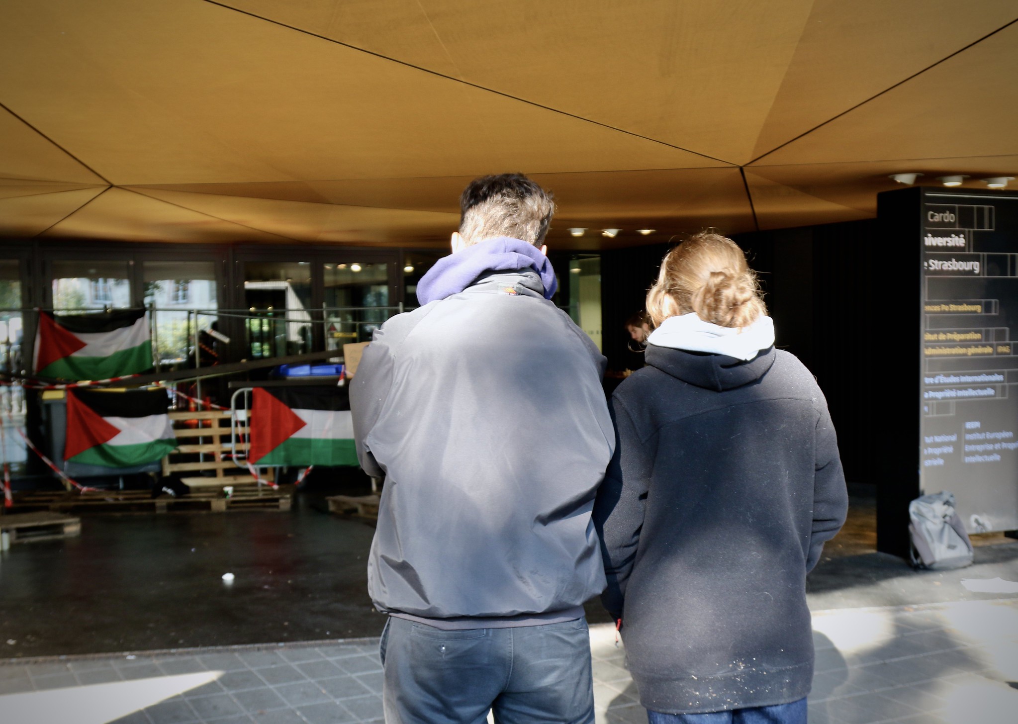 Le bâtiment Cardo de Sciences Po Strasbourg bloqué jeudi 2 octobre, une quarantaine d’étudiants viennent soutenir le mouvement.